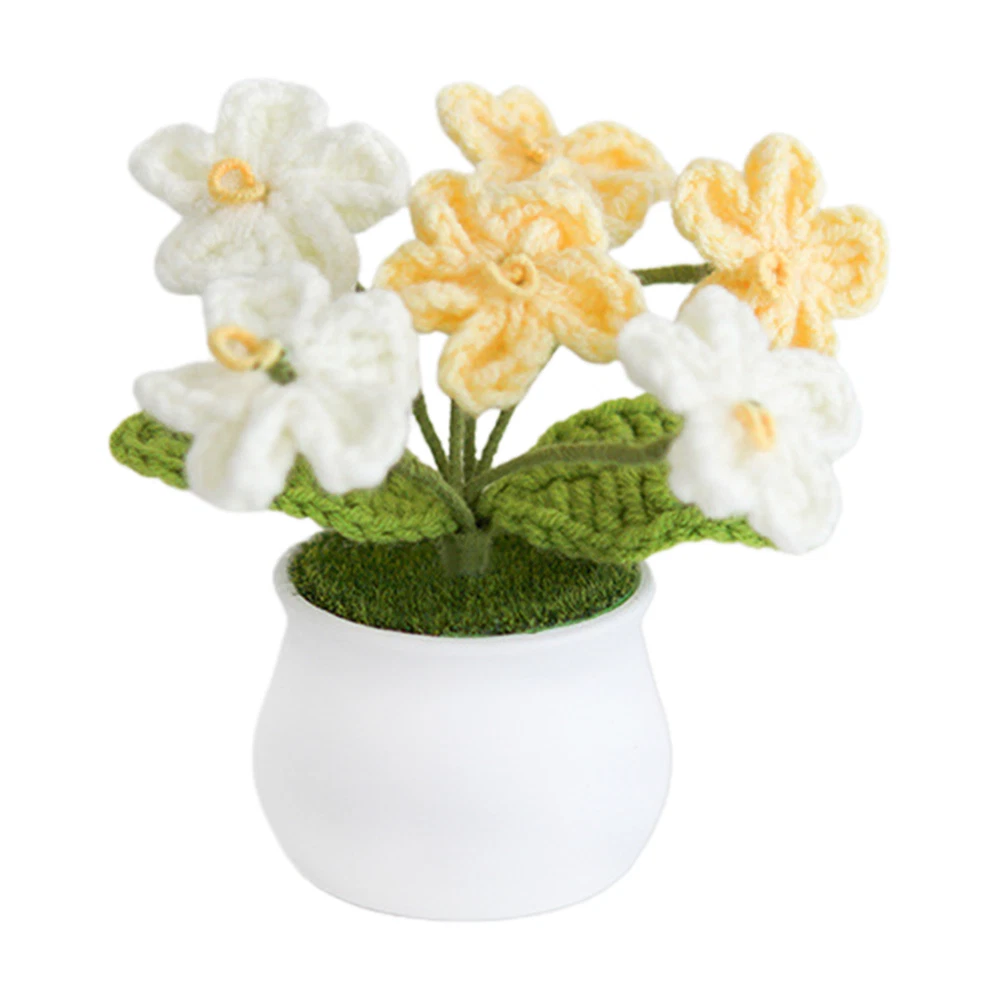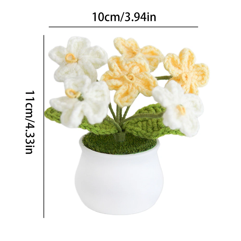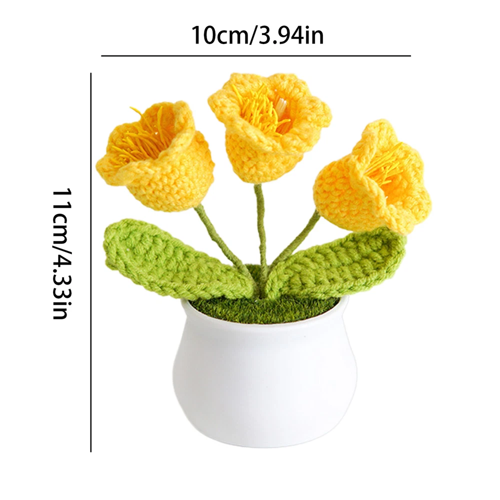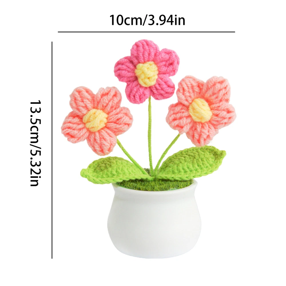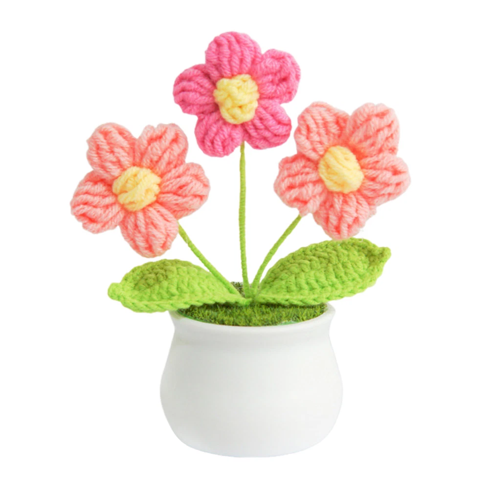 Hand Knitted Potted Plants Crochet Flower Bouquet Home Desk Decor Ornament