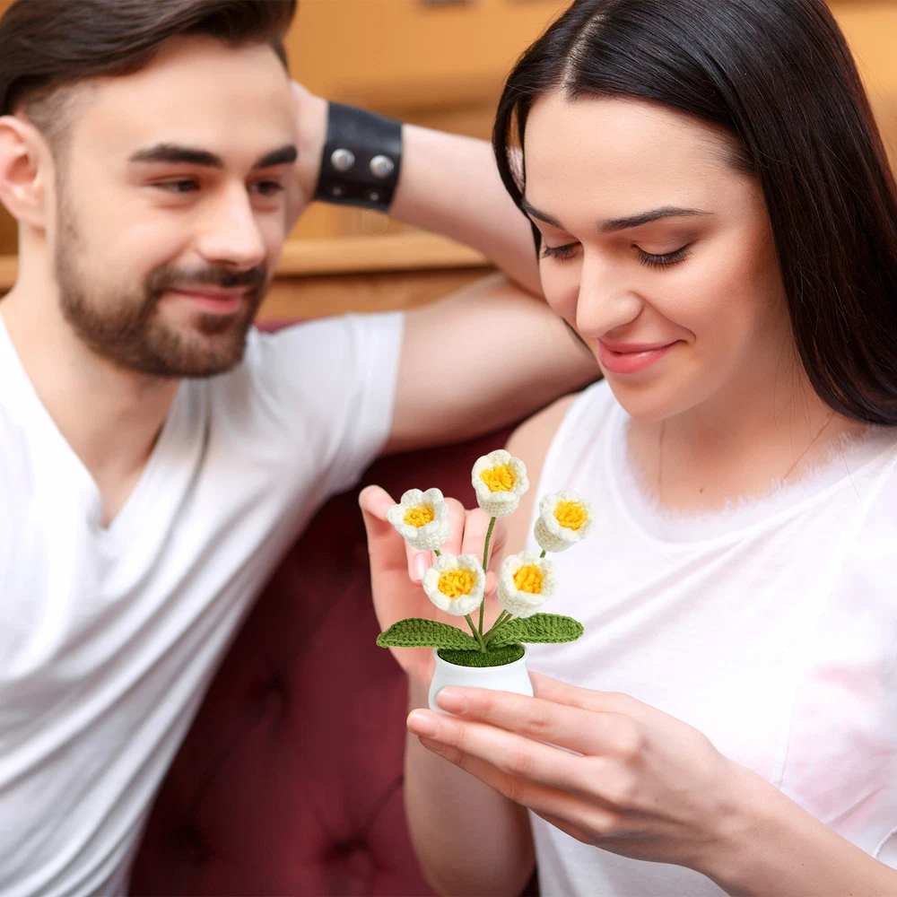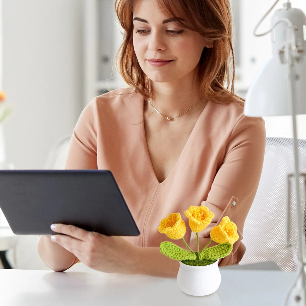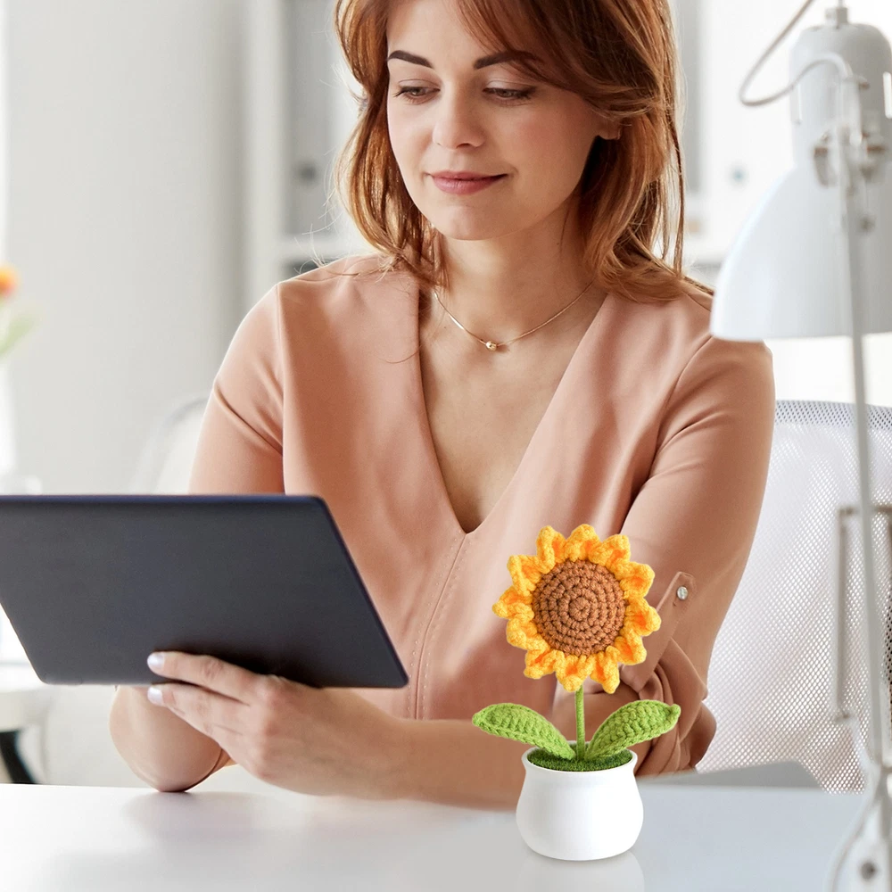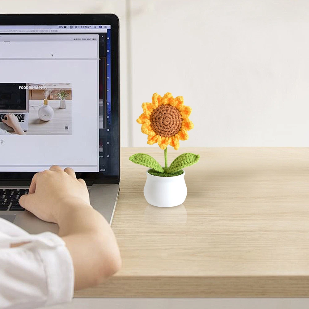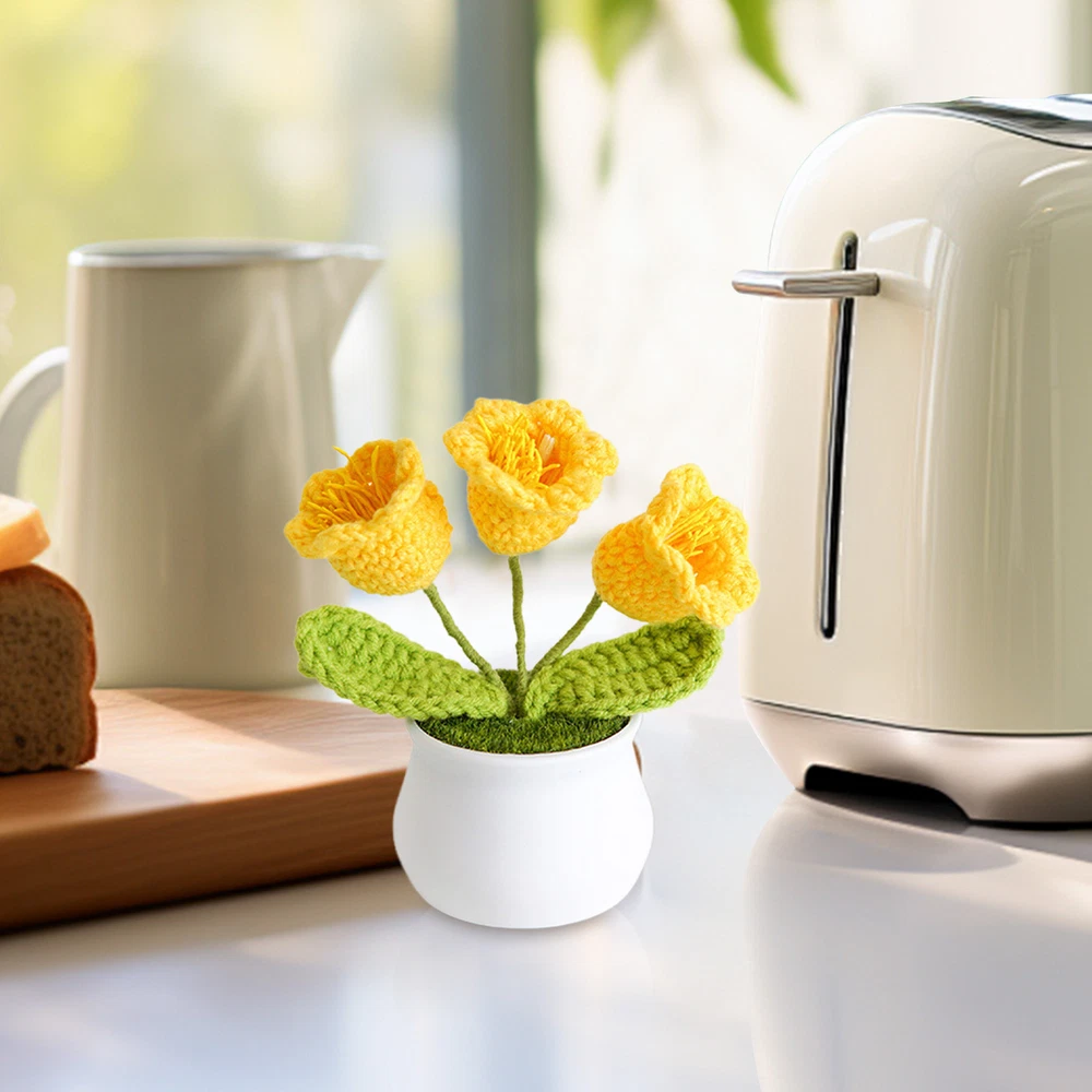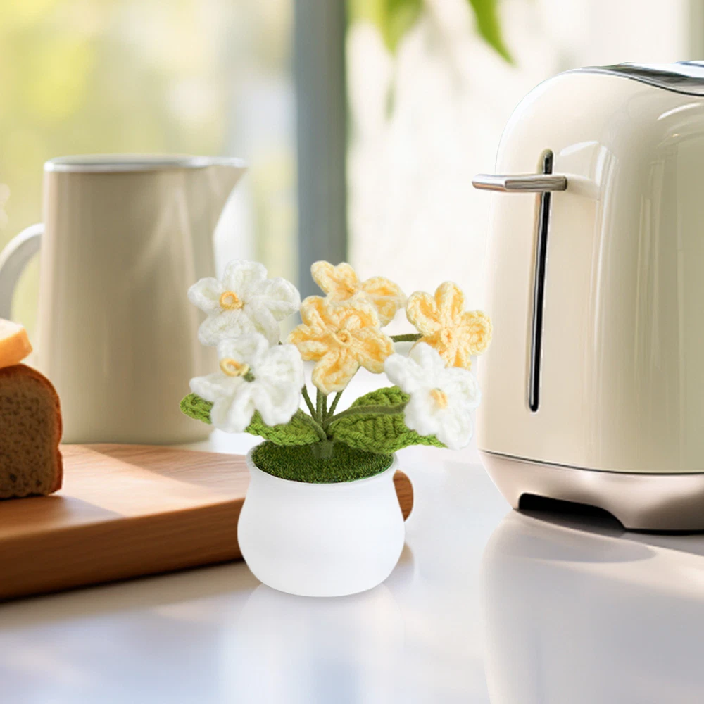 Hand Knitted Potted Plants Crochet Flower Bouquet Home Desk Decor Ornament
