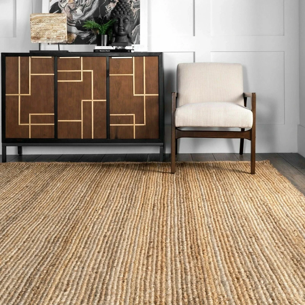 100% Jute, made in India The perfect combination of style and durability, our jute rugs bring home effortless sophistication––perfect for your living room, dining room, kitchen, or hallway Sleek and functional 0.35” thickness allows for convenient placement in entryways, underneath furniture, and will not obstruct doorways Sprouting and shedding are common due to being made from plant fibers, trim any loose threads with scissors and regularly clean under your rug Vacuum your jute rug 1-2 times a week on the lowest power level or with handheld attachment and spot clean as needed with mild detergent We recommend pairing with a nuLOOM rug pad for added comfort and reduce friction and shedding Stylish & Versatile Stylish and versatile with a globally inspired feel, this jute rug makes a beautiful statement on its own but can also be used as the perfect laying piece for more vibrant rugs