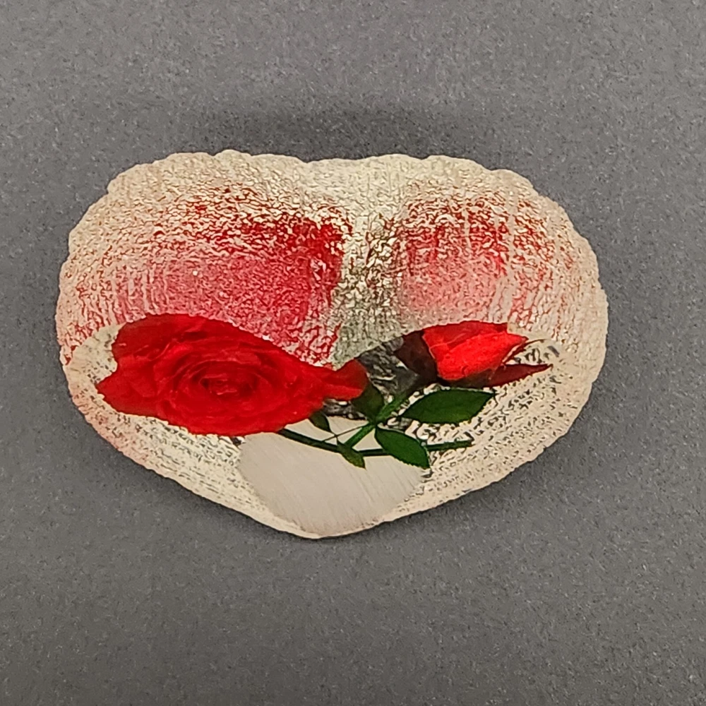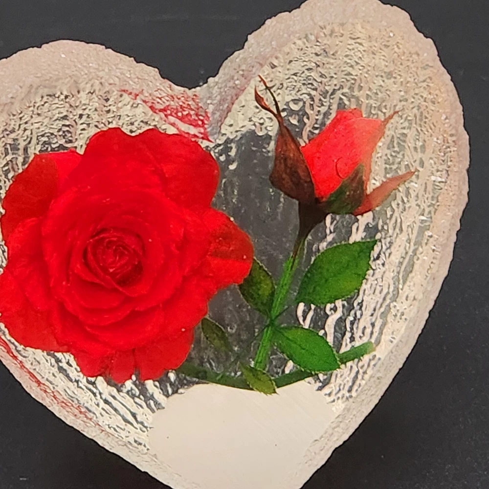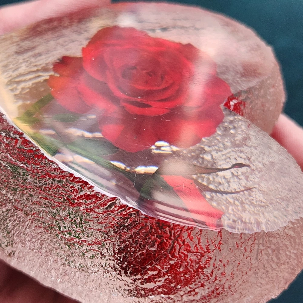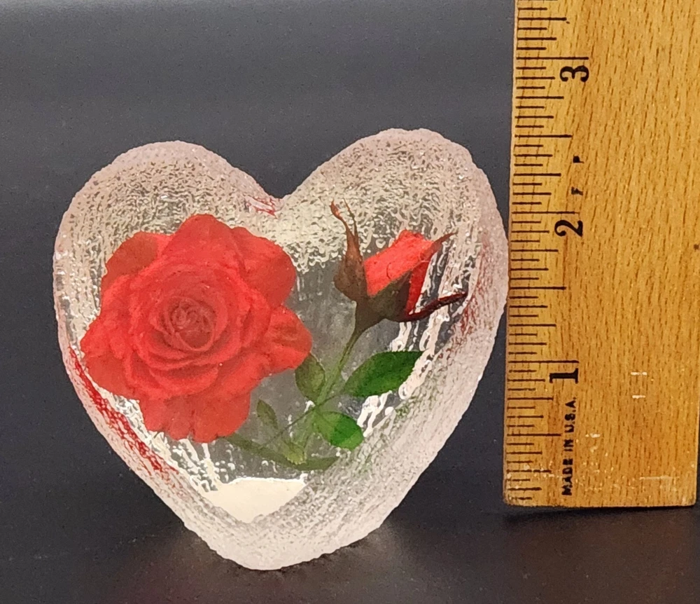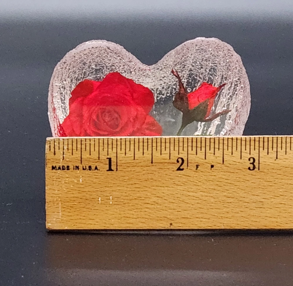 Hand Made Resin Encased Rose Flower Paperweight Desktop Decor Heart Shaped