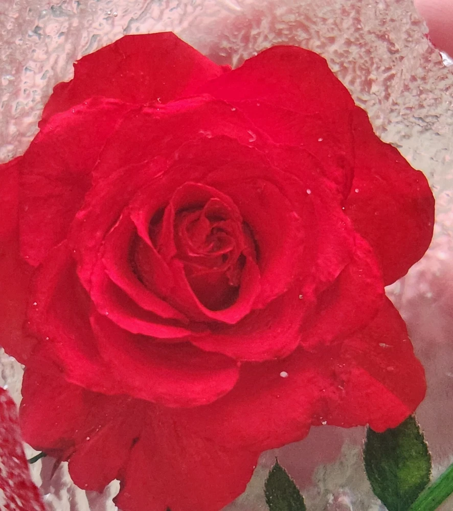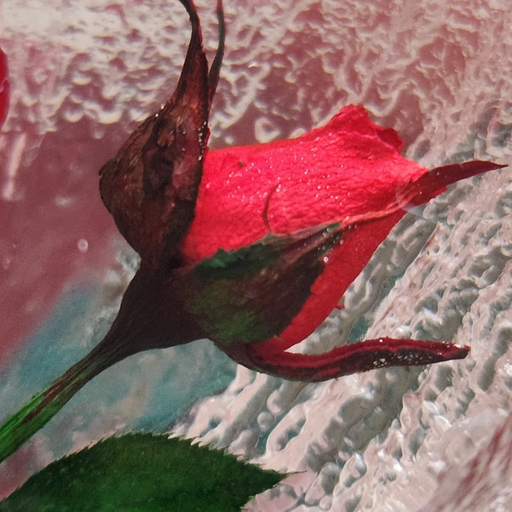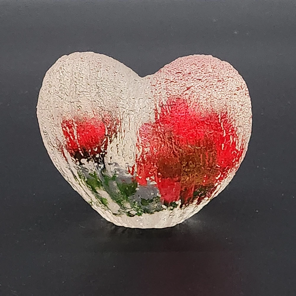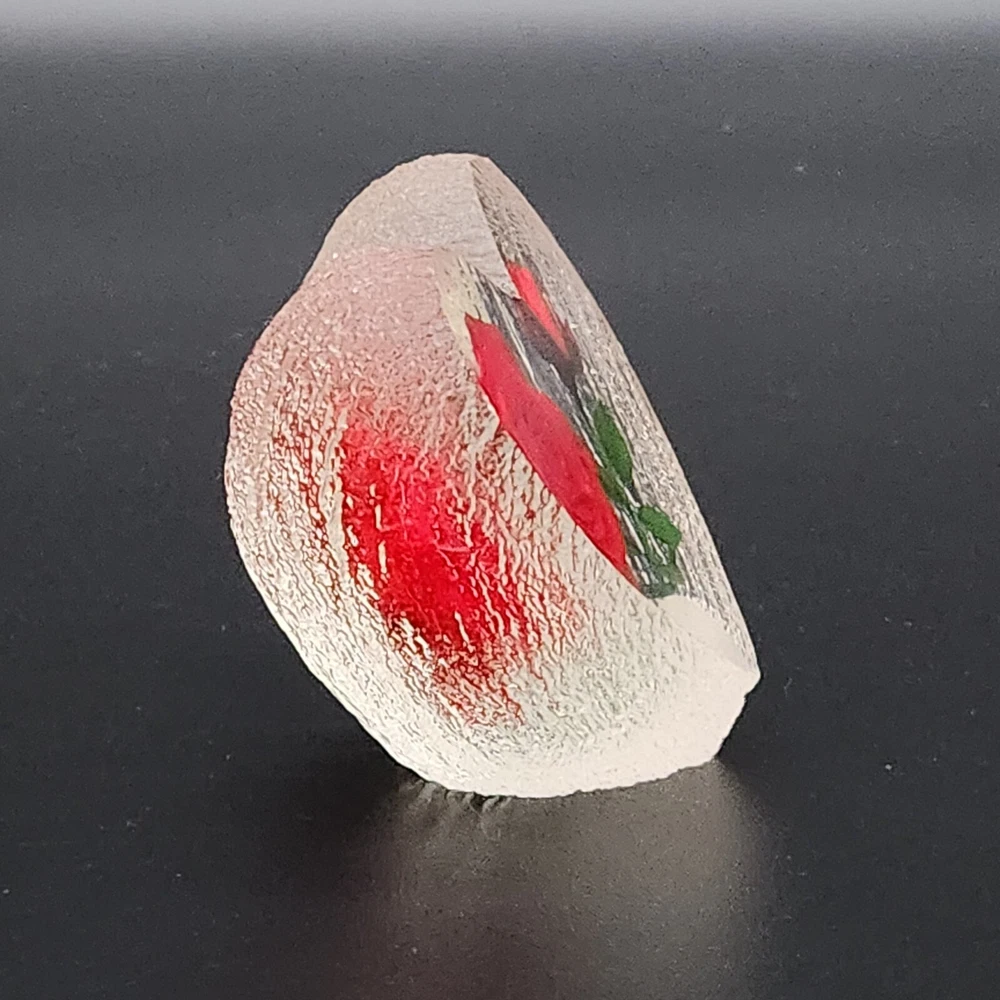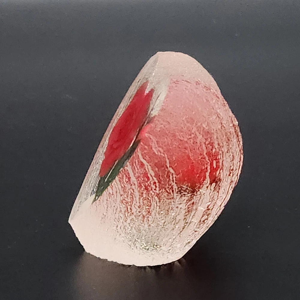 Hand Made Resin Encased Rose Flower Paperweight Desktop Decor Heart Shaped