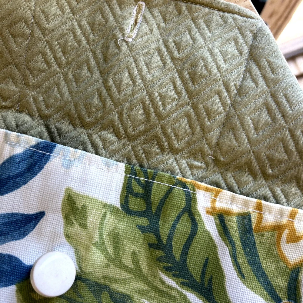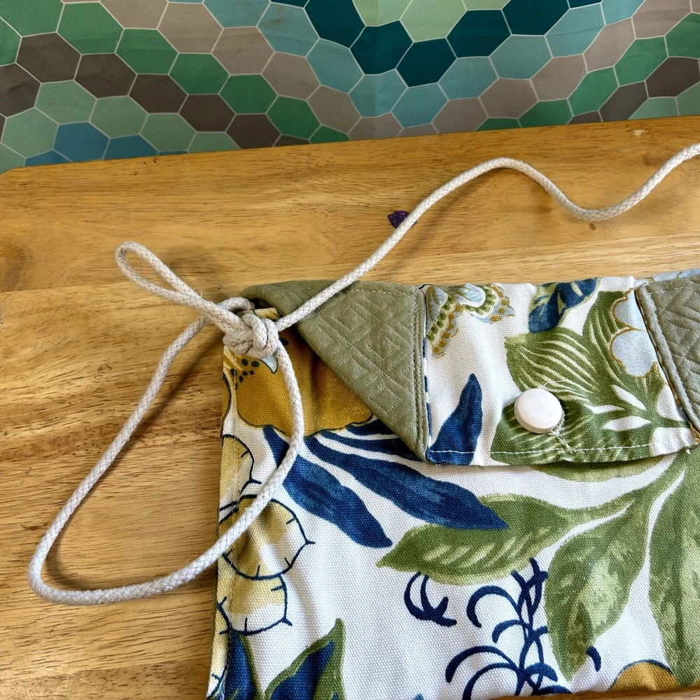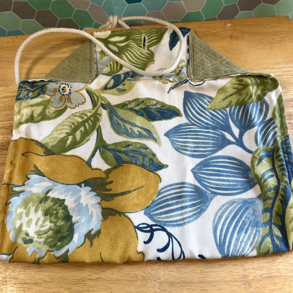 Hand Made in USA purse / Bag 12" long 8" tall green yellow blue floral leaf rope shoulder strap lined green material beautiful see pictures You ARe Enough 2092. $25 9 oz