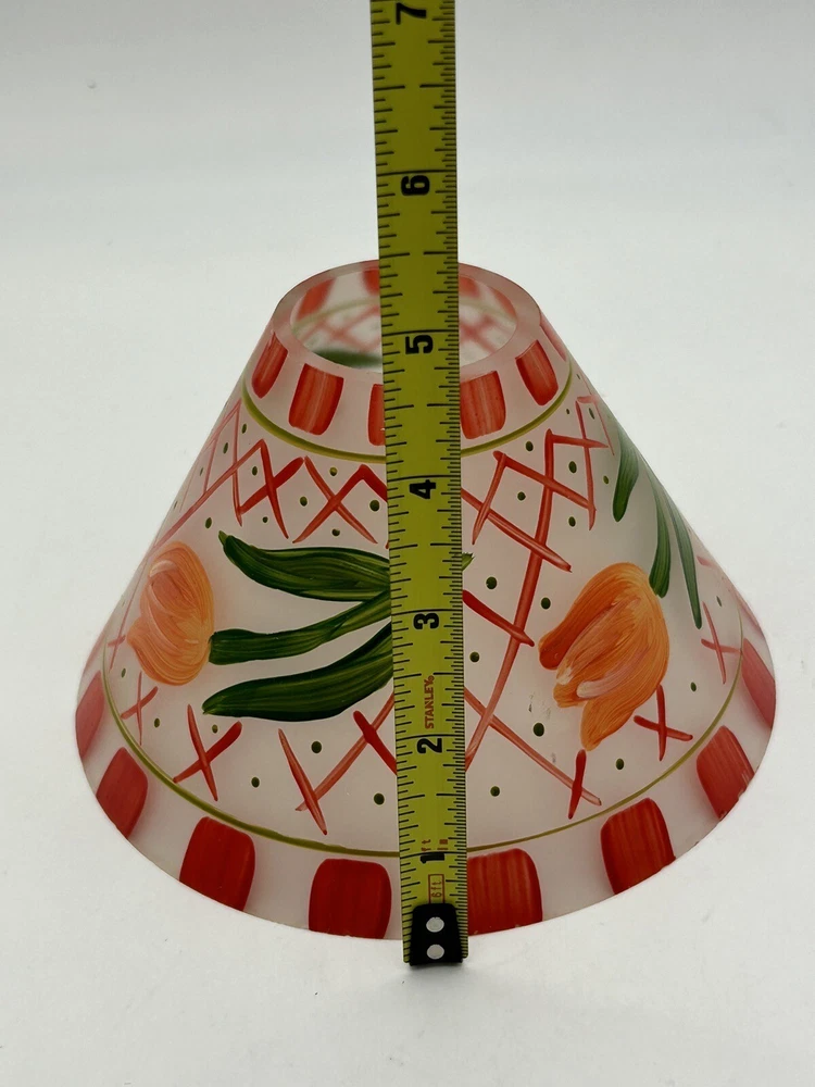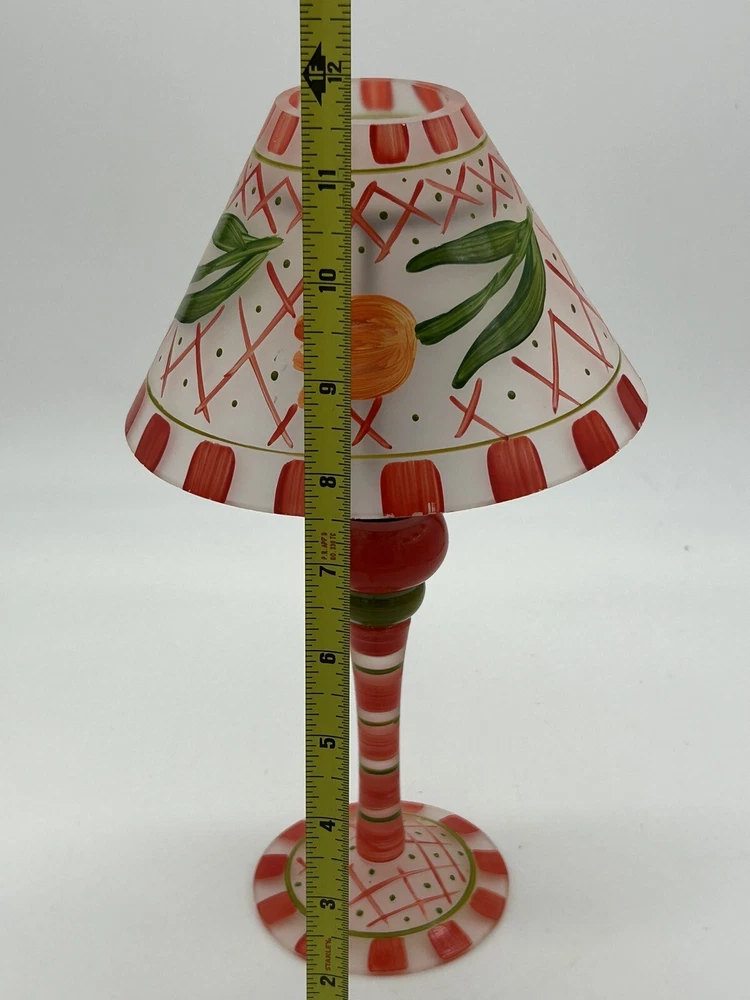 Hand Painted Artglass Glass Tealight Candle Holder/Lamp Orange & Green w/ Tulips 3 piece Glass Base & Shade, Tulips on Shade Approximately 11 1/2” tall