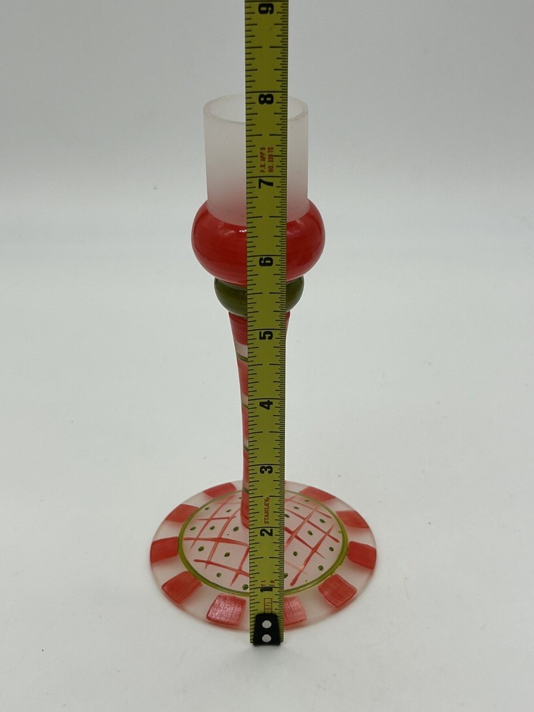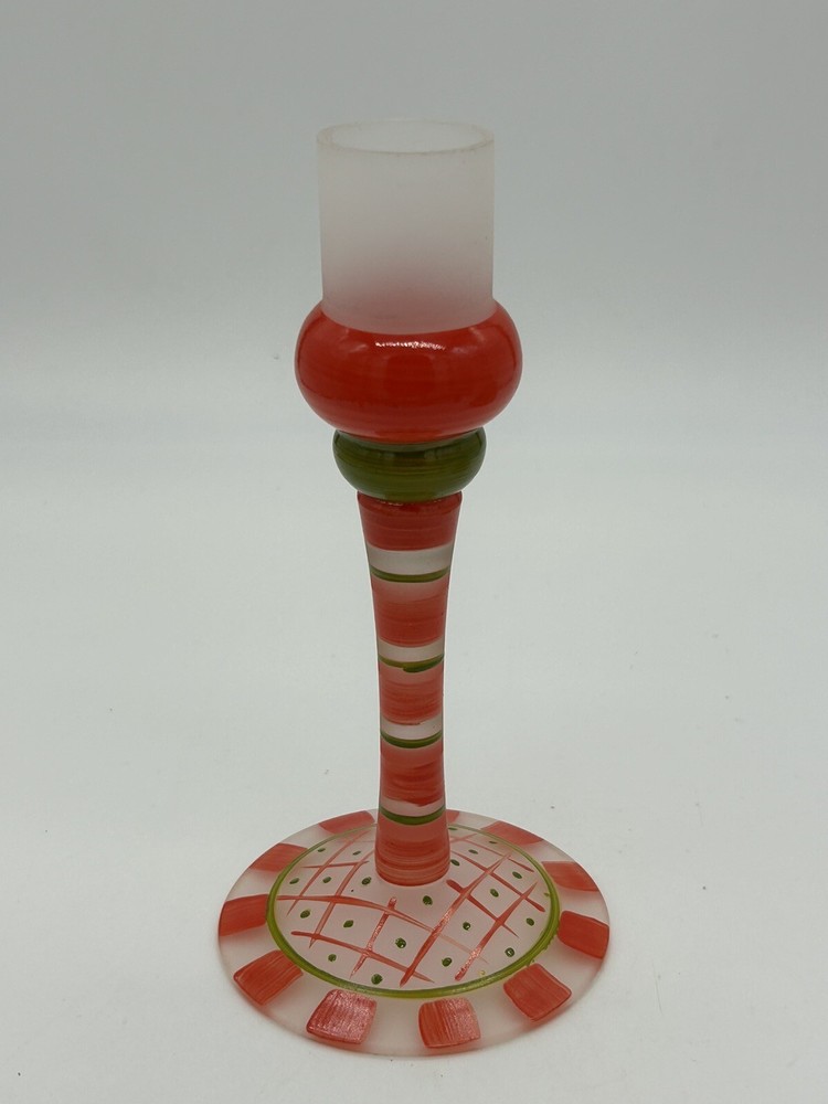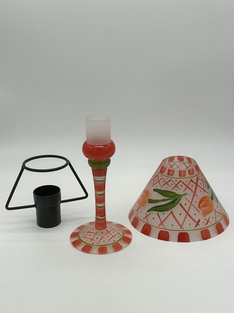 Features: Hand Painted Material: Glass Type: Candle Holder Color: Orange Green Pattern: Floral Subject: Floral Checkerboard Polka Dots Brand: ArtGlass