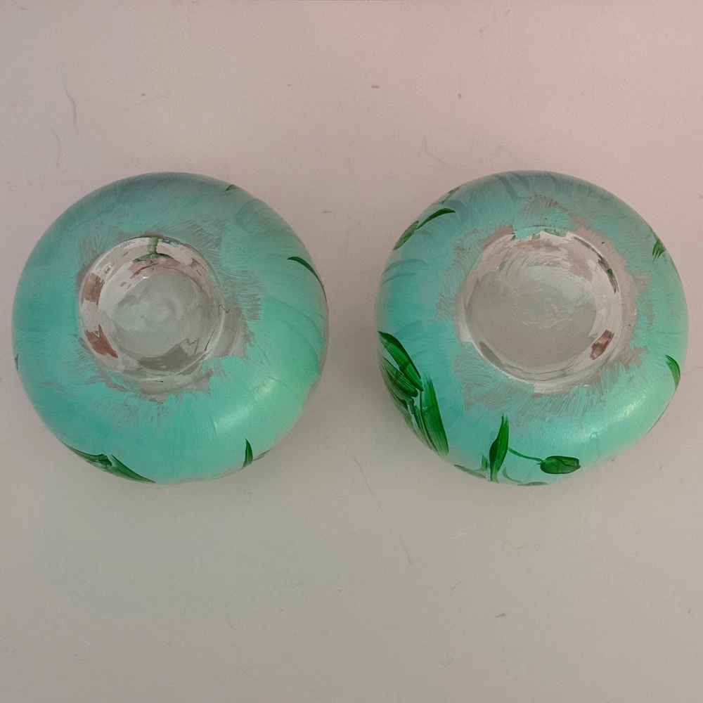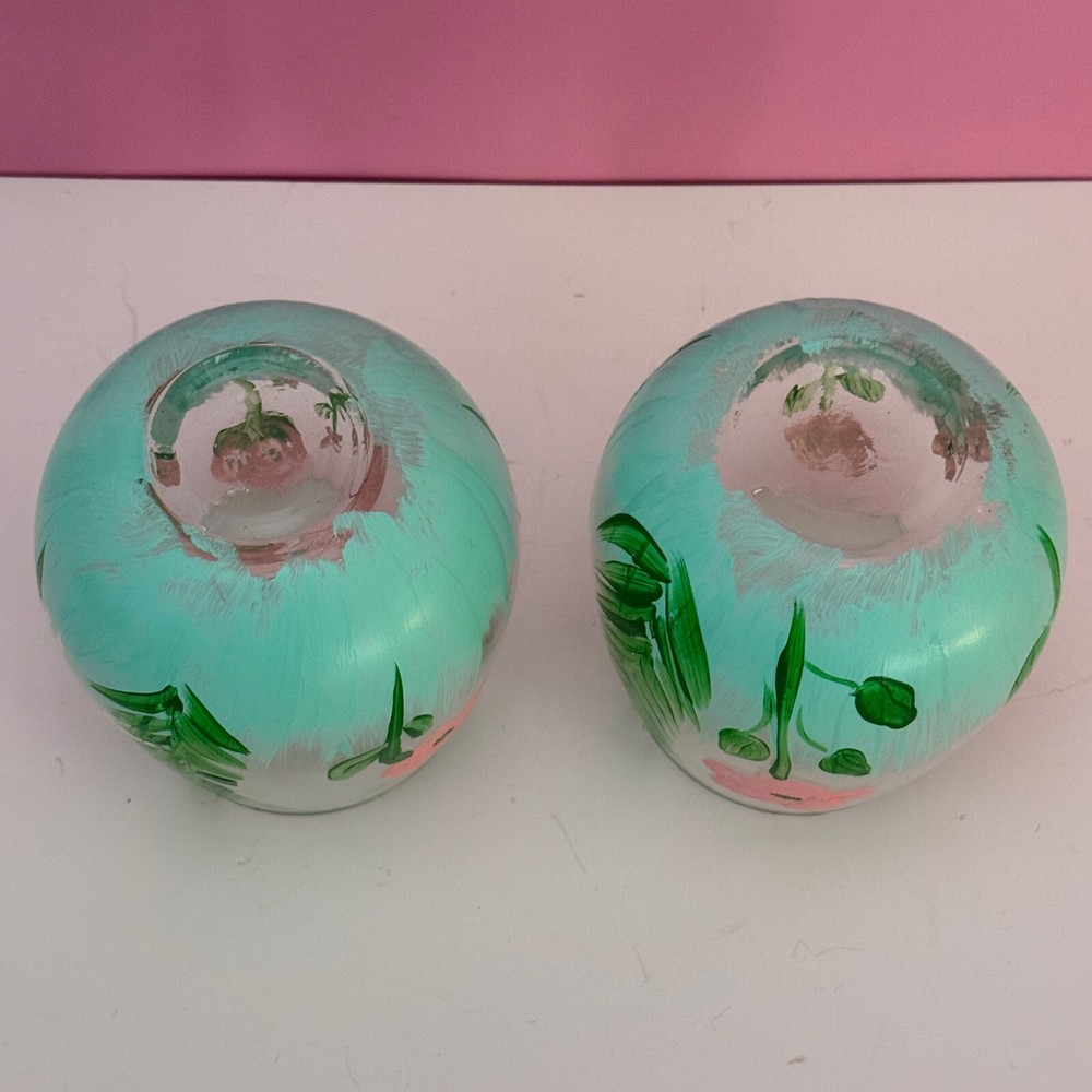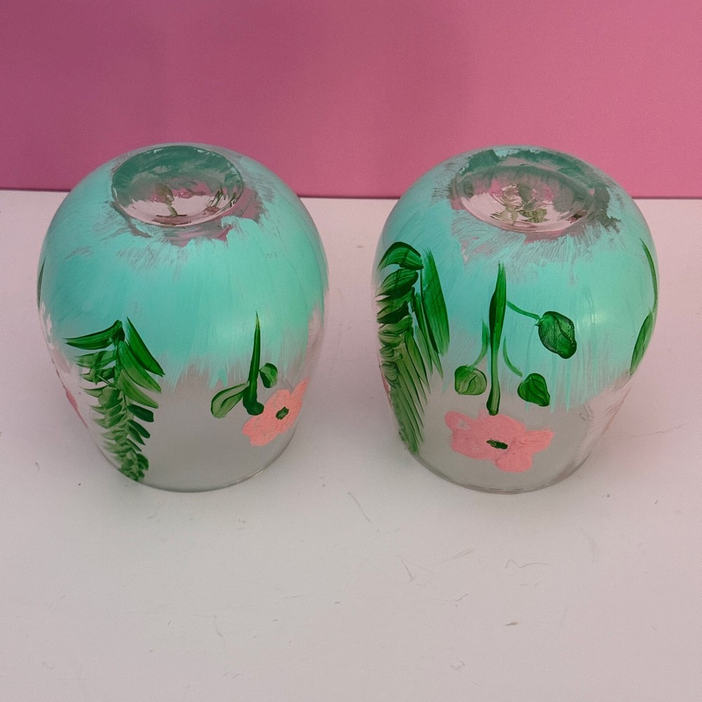 Set of 2 Hand Painted Stemless Wine Glasses - Floral Design, 4" in Tall. Pre-owned. Overall in good condition. 4 inches tall with an approximately 3-inch diameter opening. Shows some signs of wear, including minor scratches and possible slight fading of some painted areas. Hand-painted floral design. Please see photos for more details. The pictures are of the exact item you will receive. Please check the photos for more details. Please note that this item might have a slight smell of smoke due to storage and the cardboard box used for shipping. We take great care in cleaning and carefully packing the item to minimize any potential odors. Additionally, we prioritize fast shipping to ensure the item arrives quickly and in excellent condition. If you have any concerns, feel free to contact us before purchasing. Thank you for your understanding!