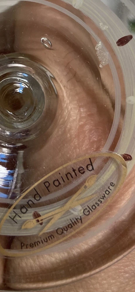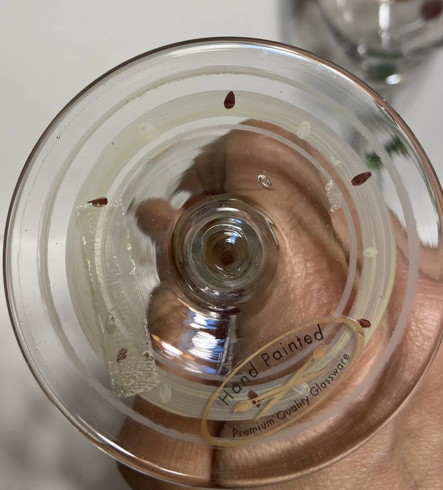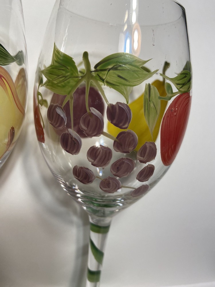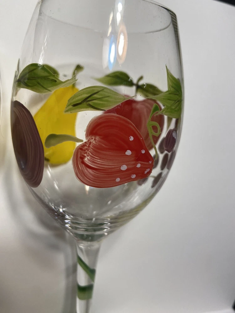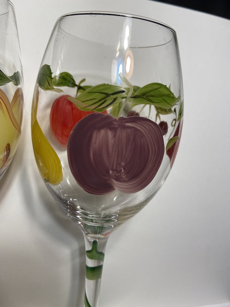 Fruit Wine Glasses Pears Apples Hand Painted Set Of 2 Harvest Gold Burgundy Rare.