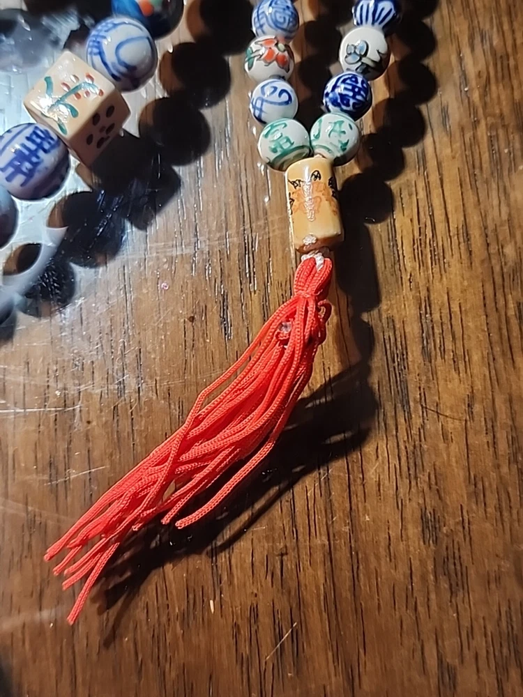 Vintage Mala Buddhist Meditation Prayer Beads porcelain barrel Beads with tassel