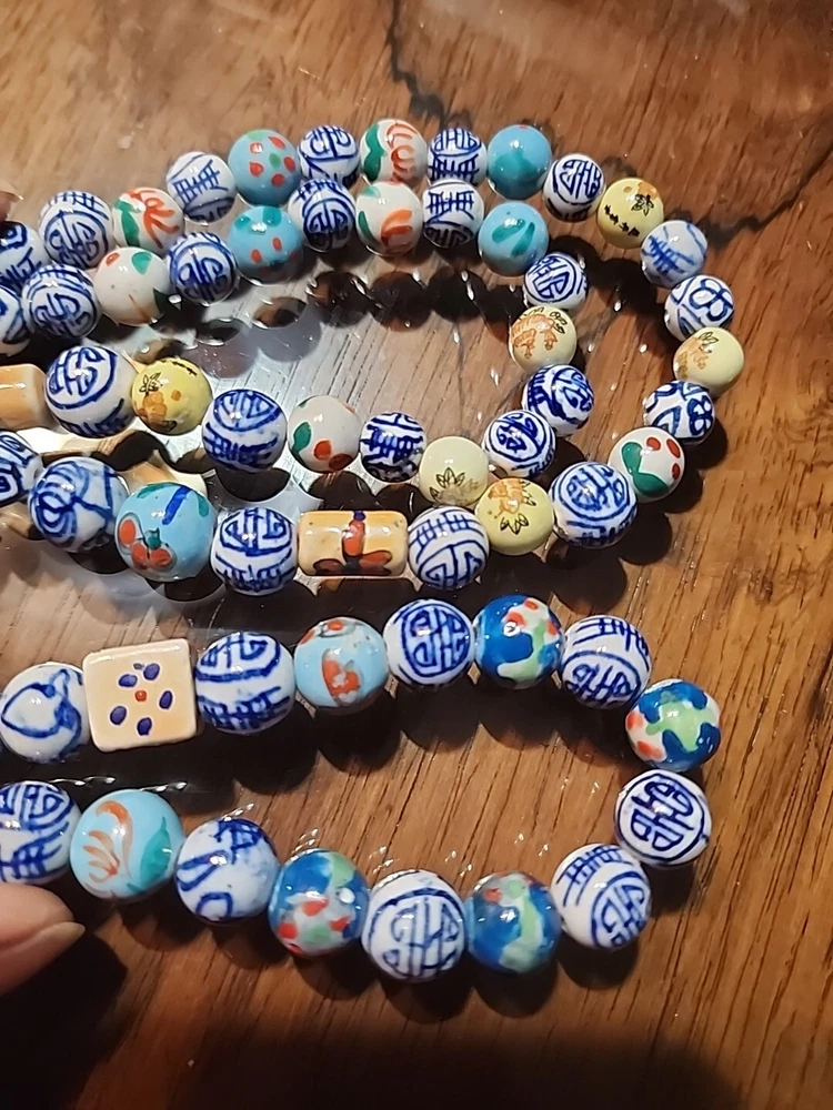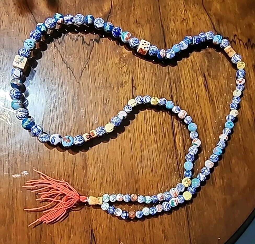 Hand Painted Painted Porcelain Mala Prayer Beads 109 Beads 44" Buddhist Beads