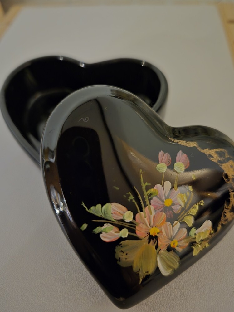 Size: Small Style: 1980s Finish: Glossy Item Width: 2.5 Brand: portugal Year Manufactured: 1980 Pattern: Floral Room: Bathroom, Bedroom Theme: Romantic, Flowers Care Instructions: Clean with Damp Cloth Occasion: All Occasions Subject: Flower Material: Porcelain Color: Multicolor Shape: Heart Features: Hand Painted Item Height: 2.25 Item Weight: 6 oz Item Length: 2.5 in Collection: Keepsake Boxes Country/Region of Manufacture: Portugal Type: Trinket Box Original/Reproduction: Original Number in Pack: 1 Time Period Manufactured: 1980-1989