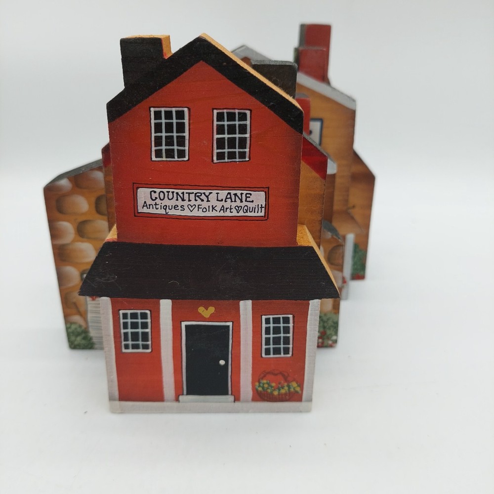 Hand Painted Wood House Barn Store Shelf Sitters Decor Lot Of 8