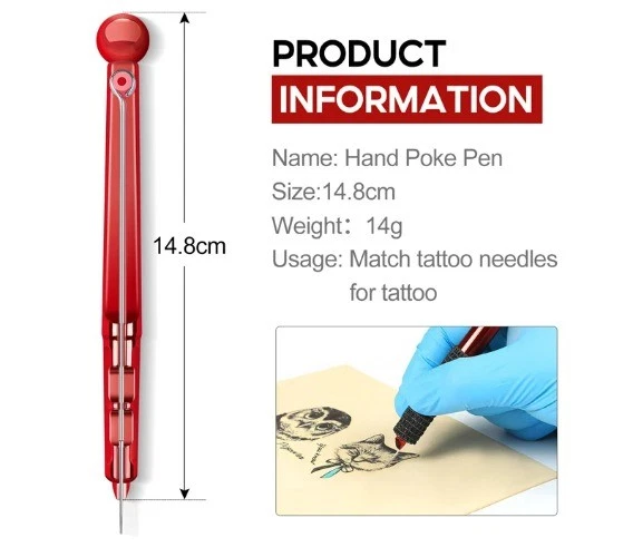 This hand poke tattoo kit is perfect for beginners! The sturdy ABS and stainless steel design feels durable, and the ergonomic pen makes it easy to control. The included needle holder ensures smooth, precise strokes, while the ink cups and gloves keep everything hygienic. Great for learning traditional hand-poking techniques—highly recommend for anyone starting out!