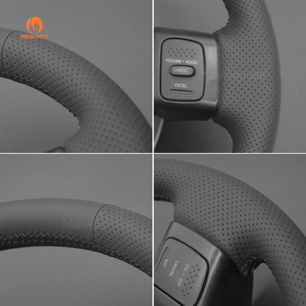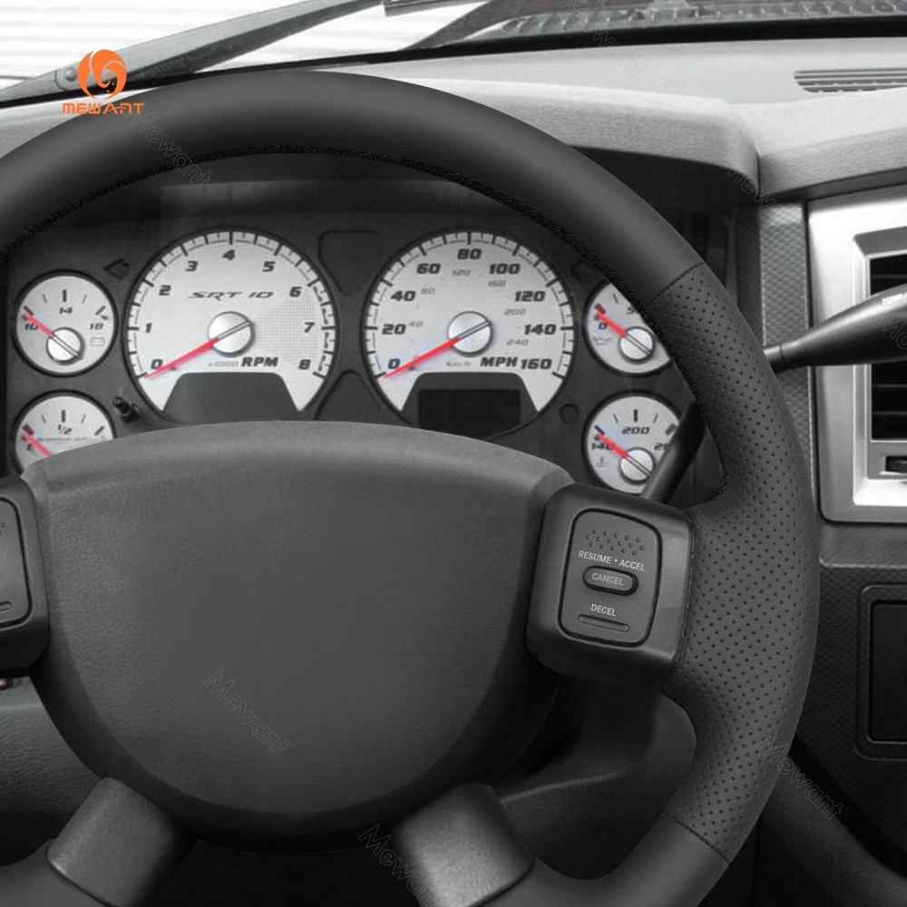 Black Genuine Leather Steering Wheel Cover for Dodge Ram 1500 2500 3500 ONE Car ONE Template Factory buy brand new steering wheels from all over the world, to make the templates which could 100% fit the corresponding car model. Personalized customization Many colors of thread and material for choose to customize. According to the colors and materials you could customize a new style cover. Multiple protection With soft genuine leather, guarantee a good grip while driving. With 100% fit Mewant cover, it won’t slip while driving. The Original Steering Wheel: N OTICE This cover Suitable car model: for Dodge Ram 1500 2500 3500 2004-2008 Suitable car model name and launch year are just a reference, different countries have different model name and launch time, so please pay attention to the steering wheel picture above, make sure they are the same , if not sure, feel free to contact us. Default design: Design elements: A+C: Black Smooth Genuine Leather B: Black Perforated Genuine Leather D: Black Thread If you want to change the material or color, please contact our customer service when you order. Features * Increased Safety :High quality leather, super soft & smooth , non-slip & durable. it provides great grip on the steering wheel, massage your palm and relieve drive fatigue , bring you a great touch and feel . * Top Quality: delicate workmanship, super technology and flat sewing stitches, The steering wheel gloves are the perfect way to transform the look of your vehicles interior while protecting your original steering wheel at the same time from wear and tear. Self-installation Needed: Our steering wheel covers need to stitch by yourselves, the installation tools, video and instructions were provided to assistant, please do NOT remove the original leather before the installation, or it will not fit. Attachment:Needle,thread,double sided tape,yellow small blade ,