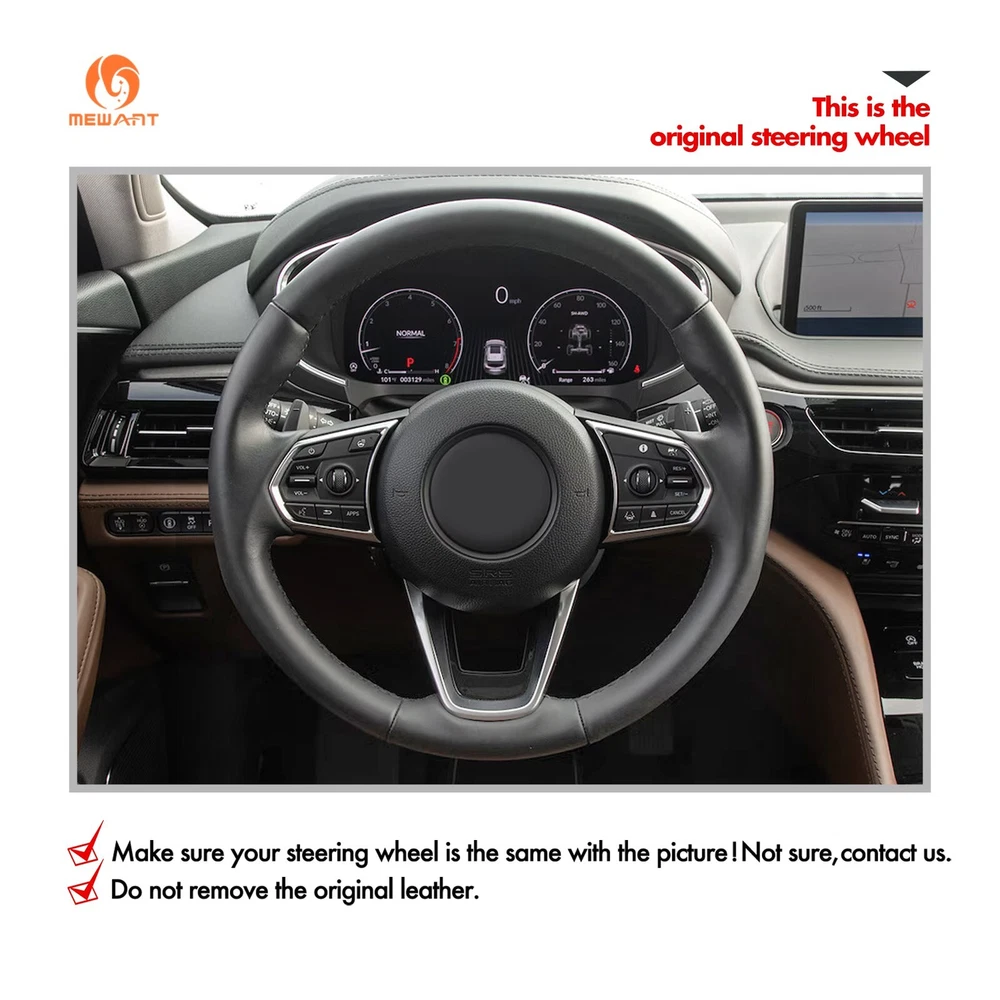 Stitch Black PU Leather Steering Wheel Cover for Acura MDX TLX 2022-2024 ONE Car ONE Template Factory buy brand new steering wheels from all over the world, to make the templates which could 100% fit the corresponding car model. Personalized customization Many colors of thread and material for choose to customize. According to the colors and materials you could customize a new style cover. Multiple protection With soft artificial leather, guarantees a good grip while driving. With 100% fit Mewant cover, it won’t slip while driving. The Original Steering Wheel: NOTICE This cover Suitable car model: for Acura MDX TLX 2022-2024 Suitable car model name and launch year are just a reference, different countries have different model name and launch time, so please pay attention to the steering wheel picture above, make sure they are the same , if not sure, feel free to contact us. Default design: Design elements: A+B+C: Black Smooth Artificial Leather D: Red Thread If you want to change the material or color, please contact our customer service when you order. Features * Increased Safety :High quality leather, super soft & smooth , non-slip & durable. it provides great grip on the steering wheel, massage your palm and relieve drive fatigue , bring you a great touch and feel . * Top Quality: delicate workmanship, super technology and flat sewing stitches, The steering wheel gloves are the perfect way to transform the look of your vehicles interior while protecting your original steering wheel at the same time from wear and tear. Self-installation Needed: Our steering wheel covers need to stitch by yourselves, the installation tools, video and instructions were provided to assistant, please do NOT remove the original leather before the installation, or it will not fit. Attachment:Needle,thread,double sided tape,yellow small blade
