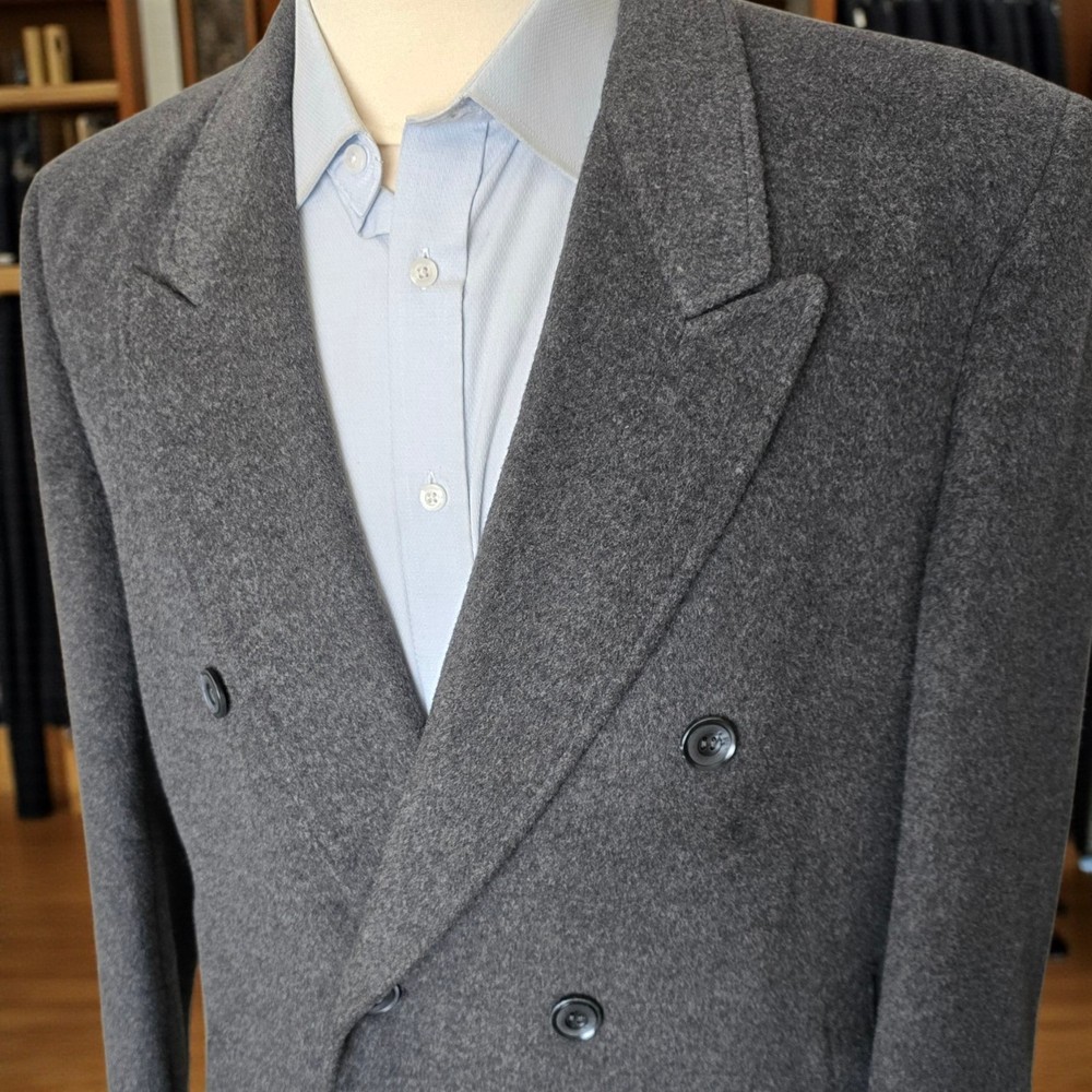 Size: 40r USA with 25- inch arm length and a jacket length of 46 inches. Pictured on a size 40 mannequin For complete measurements, see photo #2 To see exactly how we measured, see the last series of photos. Color and fabric: gray flannel long fiber wool Condition: excellent condition. No major flaws were found. No stains. No holes. No smells. The previous owner started to take his name off the interior of coat. Pulling the thread, no damage was done midweight soft flannel wool, light shoulder pads, handmade/hand tailored, made in Seoul Return policy: We offer free shipping and no returns. We can not afford to offer both in the highest return category on eBay. It becomes very expensive to mail out items for free for people to try on if they are not confident in checking the measurements in picture #2. If you prefer to have the ability to return the item and pay $15.95 shipping, please send us a message, and we can change the listing format to offer returns. The $15.95 shipping cost would break us out even in the case you needed to return the item.You must contact us before purchasing as some of our items are on consignment and we will need to get the owners approval before proceeding. We ship the next business day after the payment is made. A discounted, expedited shipping option is available at checkout. If you need help figuring out how to buy a blazer or suit on ebay that actually fits you properly. There are some fantastic videos on You tub