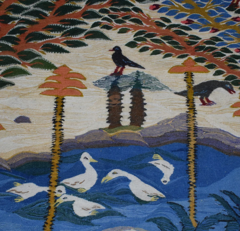 Hand Woven Tapestry-Large 6.5 FT-Egyptian Folk Art Wall Hanging-Kilim Rug Decor Hand Woven Tapestry-Large 6.5 FT-Egyptian Folk Art Wall Hanging-Kilim Rug Decor Handwoven Egyptian Tapestry - Natural Dye Wool Thread - Artisan Wall Art Experience the beauty of authentic Egyptian handwoven tapestry, crafted using natural plant-based dyes on high-quality wool threads. What makes each piece truly extraordinary is that the skilled artisans weave entirely from imagination—without sketches or guides—improvising every detail as they work. This rare mastery ensures that no two pieces are alike, making each tapestry a one-of-a-kind expression of artistic genius. The natural dyes give vibrant, long-lasting colors while being eco-friendly. Perfect for adding a touch of cultural elegance to your home. Hand Woven Tapestry Wall Hanging Egyptian Folk Art - Wool Kilim Size: 200cm X176cm ( 6.5 foot X 5.8 foot" ) Search Terms: Egyptian wall hanging, handwoven tapestry, wool kilim decor, folk art textile, artisan woven rug, tribal wool hanging, Folk style textile, cultural wall decor, ethnic woven piece, handmade wool textile, decorative wall rug, traditional woven art, home decor tapestry, bohemian wall hanging, unique woven artwork, wool wall decoration, woven home accent, natural fiber hanging, artisan craft decor, traditional textile art, desert inspired rug, colorful wool hanging, hand-dyed wall piece, artisan weaving, heritage textile art, handcrafted wool rug, cultural heritage decor, ethnic fiber art, boho chic wall decor, woven textile artwork, handwoven wall accent, tribal pattern tapestry, authentic textile hanging, handmade home textile, eco-friendly wall art, unique textile design, artistic weaving piece, natural wool hanging, handcrafted home decor, traditional weaving art, ethnic pattern wall hanging, artisan rug textile, wool decorative piece, handwoven wall fabric, cultural weaving art, folk textile rug, handmade wall fabric, unique woven textile, boho style wall piece, traditional rug hanging, cultural woven piece, hand-dyed wool textile, tribal inspired hanging, artistic home rug, handmade textile artwork, decorative fiber wall hanging, heritage rug piece, bohemian textile rug, ethnic weaving piece, handcrafted wall hanging, artisan style rug, woven wool fabric, cultural decor piece, traditional fiber hanging, vintage fiber artwork, hand-spun wool rug, unique tribal decor, rustic textile fabric, artistic home hanging, handwoven wall rug, folk art hanging piece, natural dyed wool rug, ethnic handmade decor, woven cultural textile, handmade wool fabric, traditional home rug, boho textile hanging, artisan woven wall piece, rustic wool hanging, artistic woven fabric, handmade fiber wall art, cultural rug hanging, tribal wool fabric, unique home tapestry, natural fiber textile, ethnic artisan rug, handcrafted fiber hanging