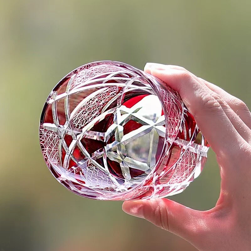 Product Description: Height: 90mm TD:80 mm BD:70mm Capacity:250ml/9oz HAND-BLOWN AND HAND-CUTTING: The elaborate geometrically carved glass is admirable by experienced artificers handwork of carving and polishing. Hand-blown glass may have some small bubbles and small black spots, which are characteristic of hand-made. The craftsman made the glass by hand, so they are slightly different one by one. LEAD-FREE CRYSTAL MATERIAL: This kind of glass cup is made from Lead-free Crystal glass, this ultra clear crystal glass body helps to appreciate the color of liquor easier, luxury, gorgeous and exquisite, give your the best whiskey tasting experience. PERFECT LARGE SIZE: The straight line deep cut rock style whiskey glasses holds 12-13 Ounce Fluid, the first choice for every whisky lover. ELEGANT DESIGN: Diamond cut design to aerate and keep the aroma in the glass for optimum nosing. True elegance will always be in style! PERFECT GIFT : Delivered in a stenciled gift box. This elaborate and high quality glass will be your favorite item. Adding for yourself, it will be perfect gift or souvenirs for family, friends, and your work associates! NOT microwave and dishwasher safe. Please use soft cloth or sponge when you wash.