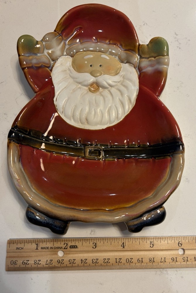 Hand painted & Glazed Earthenware Santa Claus Nut Or Candy Serving Dish
