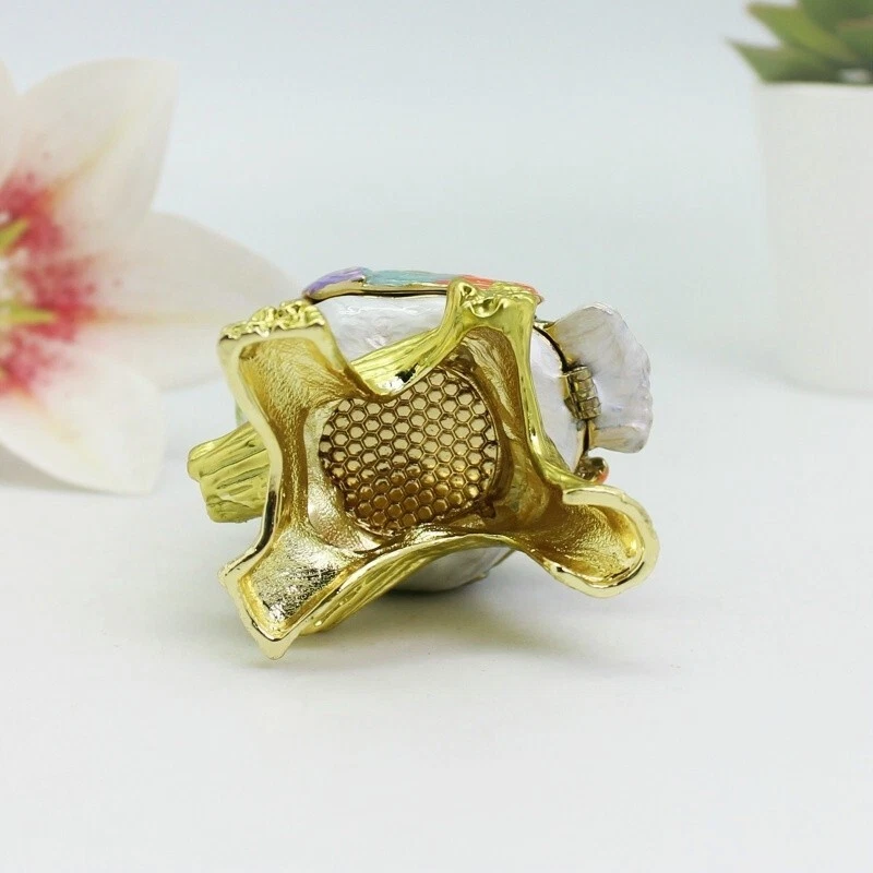 【 Materials】Pewter Enamel Made in GuangDong 【 Package】Gift Box 100% Brand New Handmade Pewter Enamel Trinket Box Handmade by masters with 20+ Years Experience Can be use for Birthday Gifts,Wedding Favor,Christmas Gifts,Home Decorative This collectible trinket box is meticulously crafted from fine pewter I t is hand enameled and then lavishly inlaid with crystals by skilled artisans. Opens on a hinge to reveal the hand painted interior Magnetic closure to keep the box shut securely , T his jewelry trinket box is made of a pewter-like alloy and finished with a high polished finish Versatile Use: Perfect as both a decorative piece and a functional trinket box I deal for storing small precious items while bringing fortune symbolism