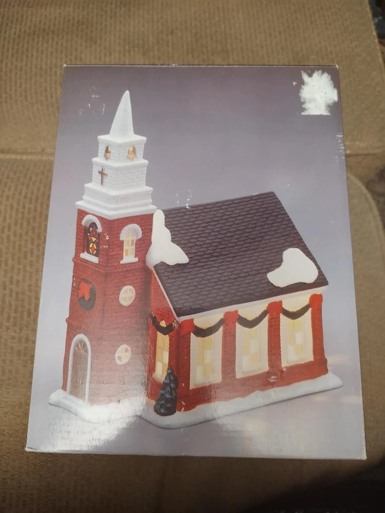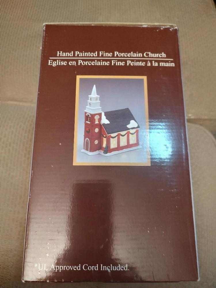 The Galleria Hand Painted Fine Porcelain Village Church is a Christmas decor piece from 2003 featuring a church-shaped building with a multicolor painted brick design. This Christmas village item is part of the Galleria collection and is hand-painted, adding a unique touch to any room during the holiday season. Made of porcelain, this church-themed decoration is ideal for adults looking to create a festive and inviting Christmas village display.