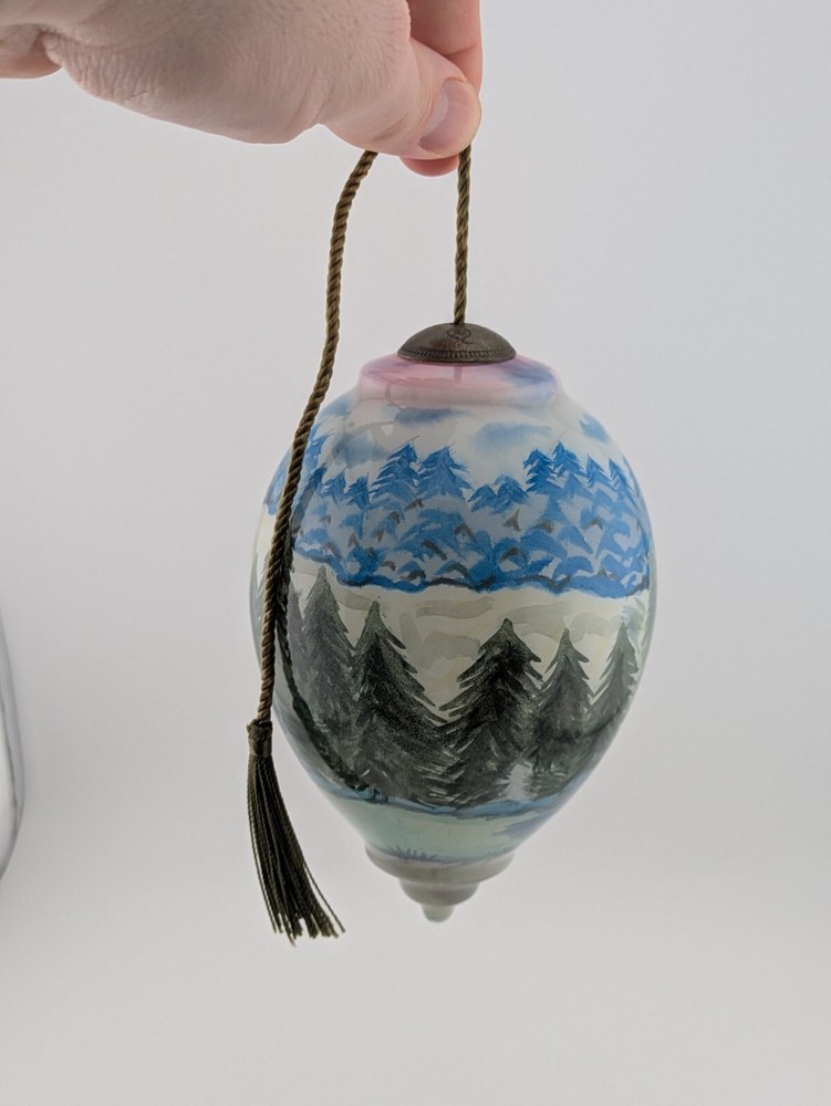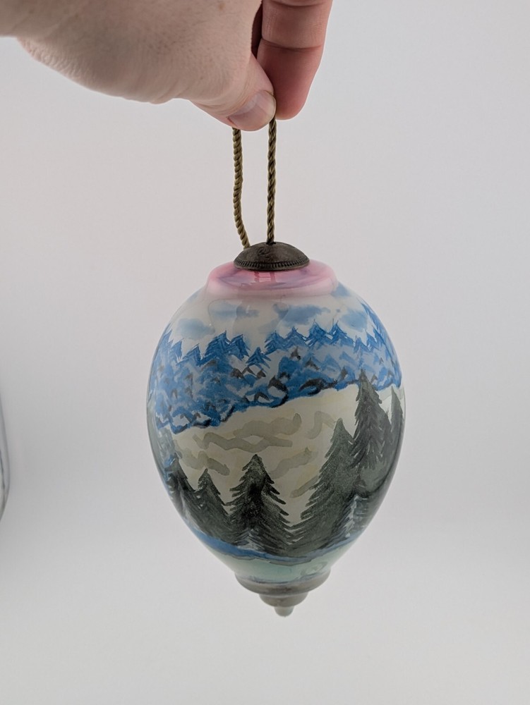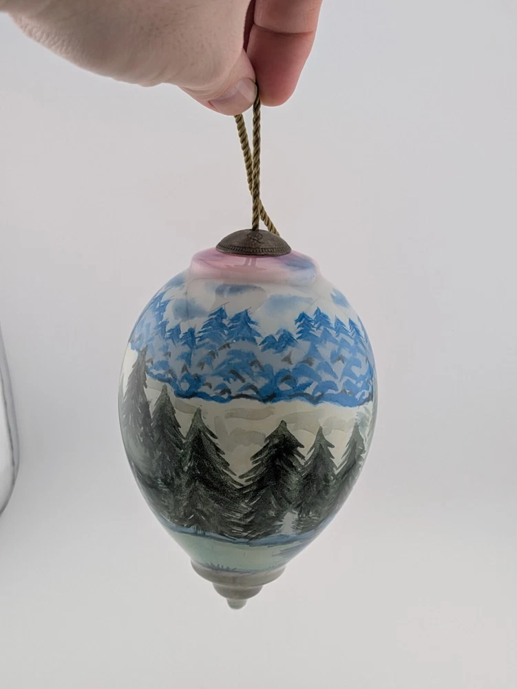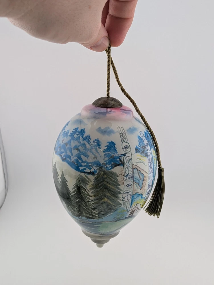 Ne' Qwa Art HandPainted Christmas Ornament Santa Merry Christmas Velvet Case Measures about 5"