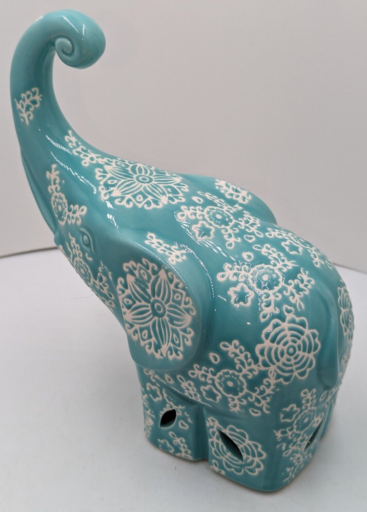 Hand-Painted Turquoise Ceramic Elephant Potpourri Holder 7 Inch by GC Home