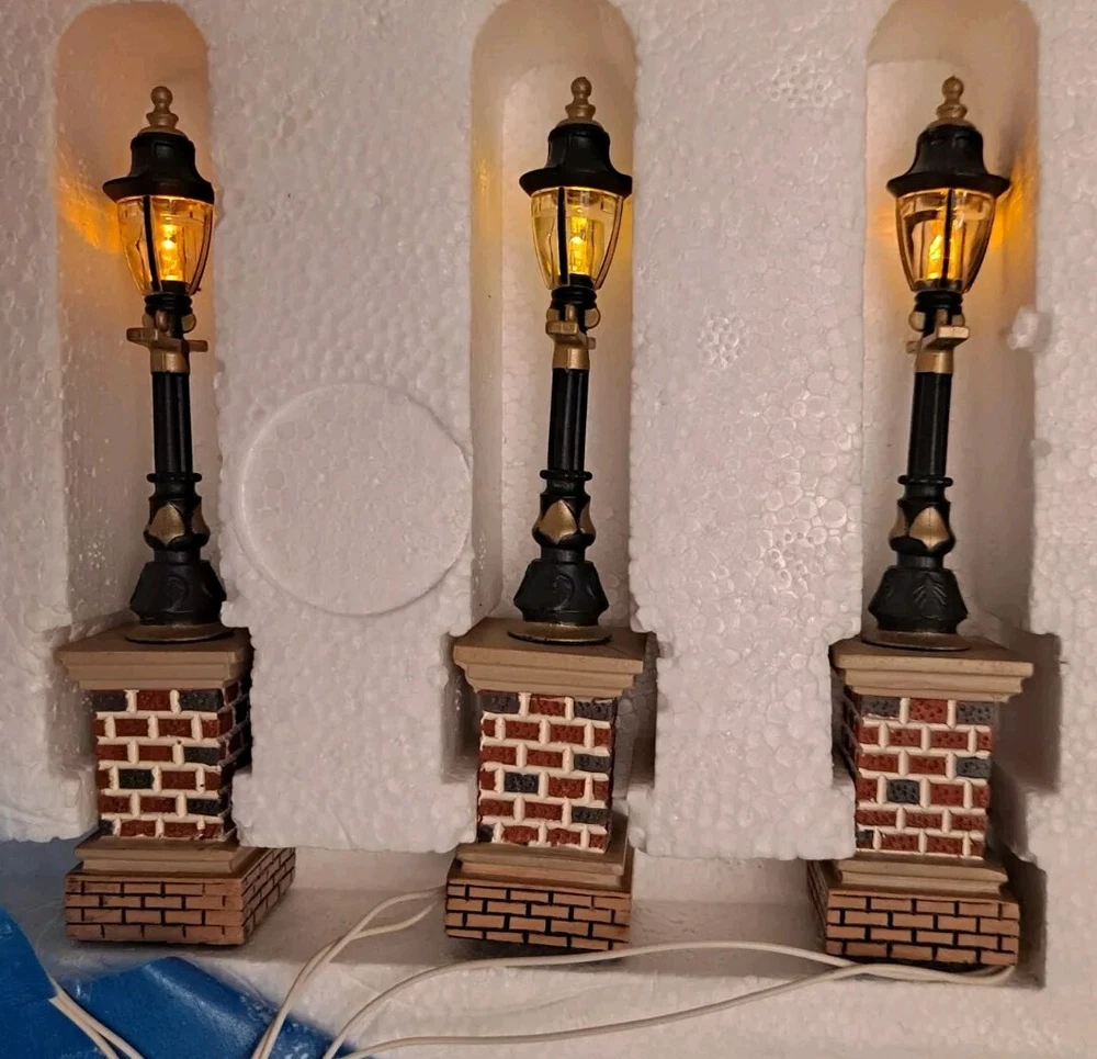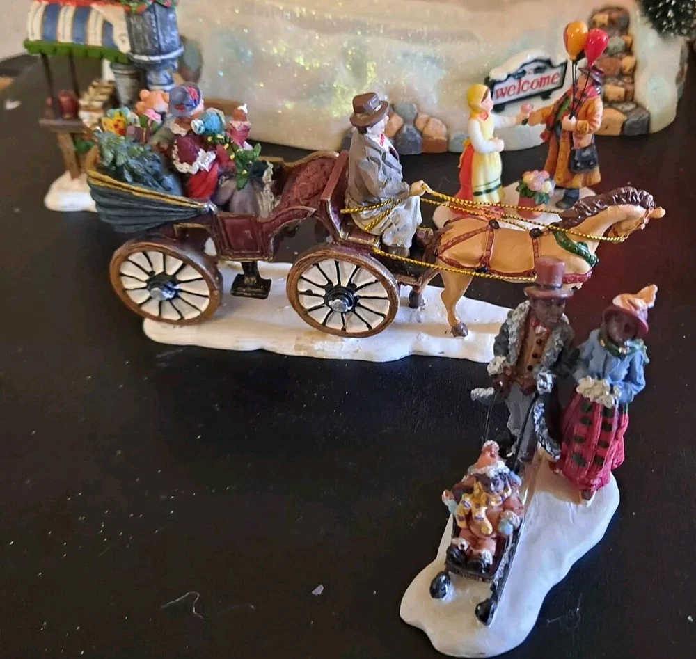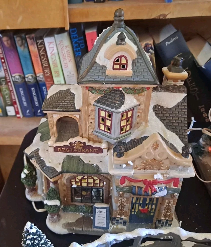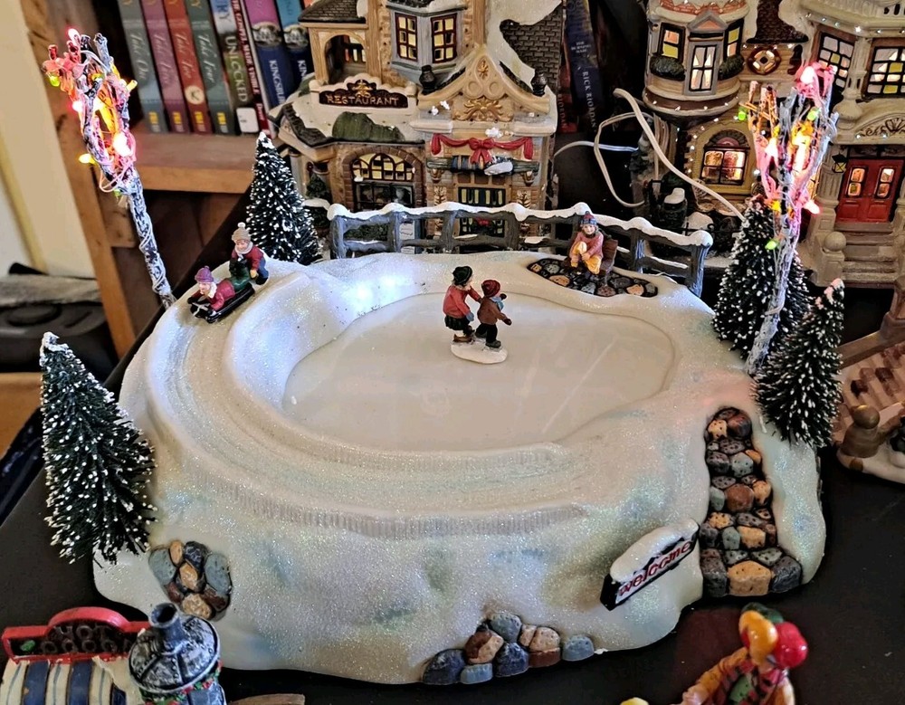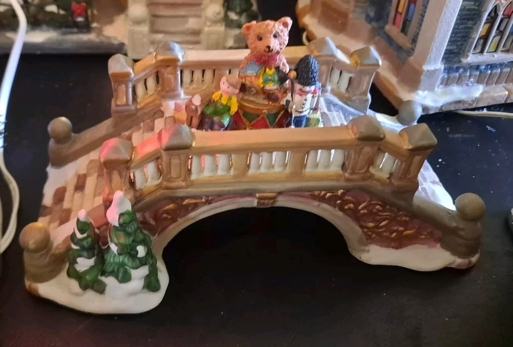 In some of my recent treasure hunting I came across this 2006 Members Mark Victorian Village Hand Painted Christmas Set. I hope to bring it to someone who will enjoy the set for the Christmas holiday as it is truly a beautiful set. This 2006 Members Mark Victorian village is in Very Good condition. In this set is: 1. The Restaurant: Needs replacement bulb, but the motor works fine. There are no broken or missing parts or pieces. 2. The House: The motor and lights all work on the house. There are no broken or missing parts or pieces to the house. 3. The Church: The light nor the motor seem to work on this building. There are no broken or missing parts or pieces to the Church. 4. The Ice Sakting Rink: All the lights work as they should and there are no broken or missing parts or pieces to the Ice Skating Rink. 5. The Bridge: There are no broken or missing parts or pieces tot he Bridge. 6. Figurines: All the Figurines that come with the set are included and there are no broken or missing parts or pieces except to the eddy Bear Toy Store Figurine. 7. Set comes with all of the power chords to the main set and to the street lamps. 8. Set comes with the original figurine picture chart. 9. All the street lamps come with the set and both sets have been tested and work as they should. There are no broken or missing parts or pieces to the street Lamps. 10. Set comes with some extra small screws 11. Set comes with fake snow.