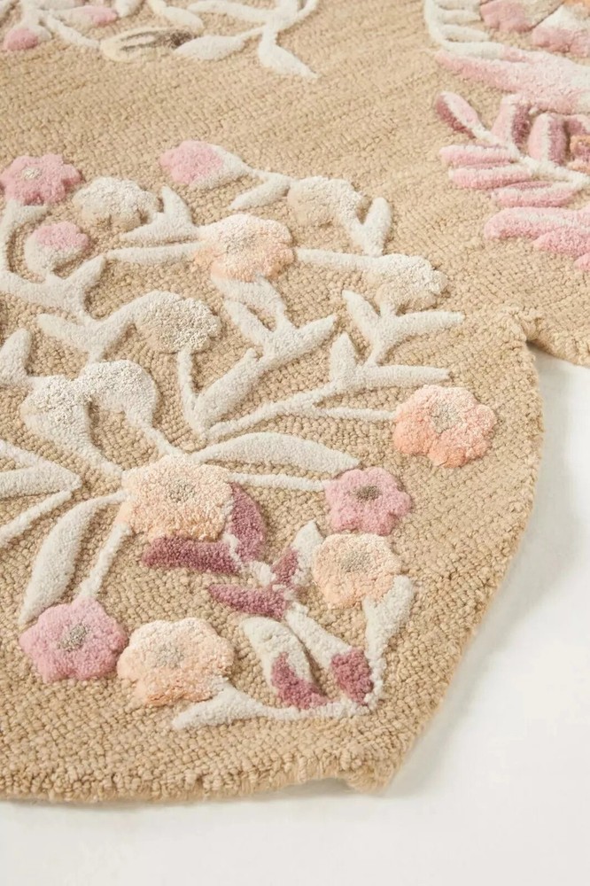 Hand-Tufted Wool Floral Rug Neutral Scalloped Edge Carpet - Rayna Design