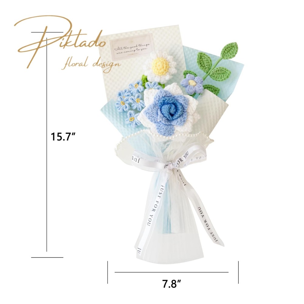 Features: Our flowers feature elegant colors for an eye catching and pleasing look. The bouquet incorporates the touch and feel of warmth, ensuring the creation of warm and joyful memories. flowers offer a unique and memorable way to express love and gratitude to all the remarkable mothers out there. Give this gift of love and celebrate Mother's day in a charming way. Specifications: Main material: cotton Size: 14.9*7.4*1.9in Package includes: 1 Set of crochet flowers bouquet Notes: Manual measurement, please allow slight errors on size. The color may exist a slight difference due to different screen displays. Please keep away from small in case of winding and choking risk. Hand-woven with care: Our Hand-Woven Flower Bouquet is expertly crafted the traditional art of crochet. Each flower in the bouquet is delicately woven by skilled artisans, ensuring meticulous attention to detail and a high-quality finish. Lifelike and lasting: This crochet flower bouquet offers a beautiful alternative to fresh flowers that wilt and fade. Made from durable materials, these artificial flowers will maintain their vibrant colors and realistic appearance for years to come, making it a perfect gift for Mother's Day, birthdays, or as wedding decorations. Versatile: With a variety of flower types and colors, our bouquet allows you to create your own unique arrangement. , suit any occasion or personal style. Thoughtful gift for loved ones: Surprise your mother, girlfriend, or loved ones with a meaningful and long-lasting gift. The crochet flower bouquet symbolizes love, appreciation, and beauty, making it a heartfelt gesture for special moments and celebrations. Easy maintenance and elegance: Unlike fresh flowers, this bouquet requires minimal upkeep. Simply dust off occasionally to keep it looking fresh and vibrant. Its timeless design and exquisite craftsmanship add an elegant touch to any space, enhancing the ambiance of weddings, parties, or home decor.
