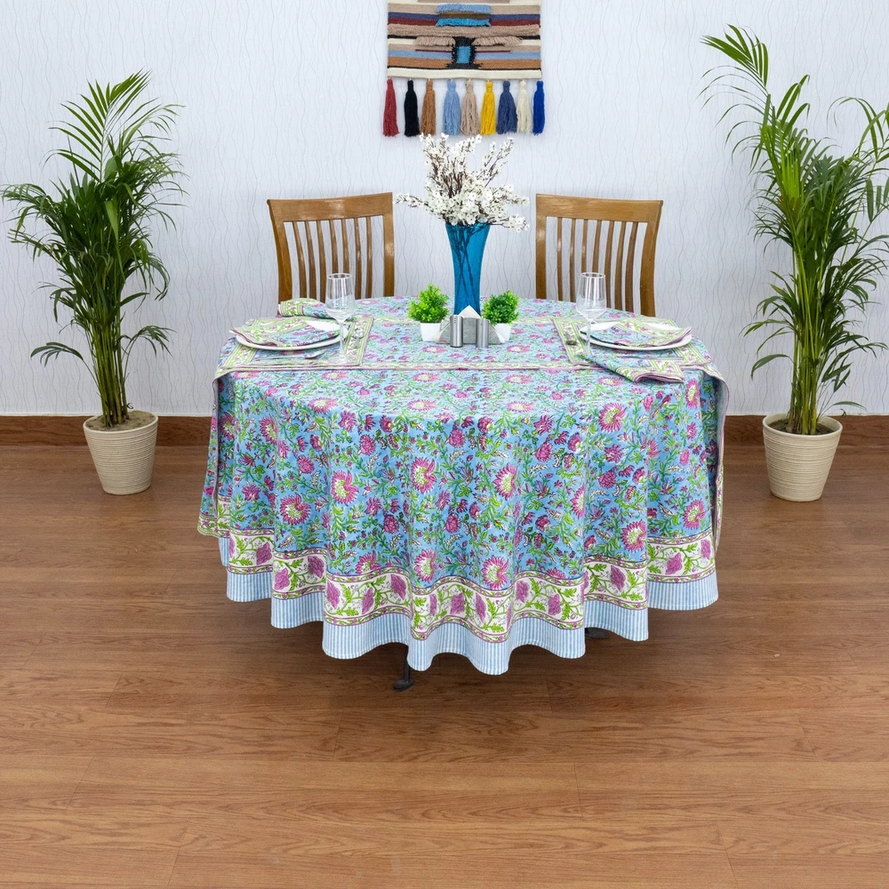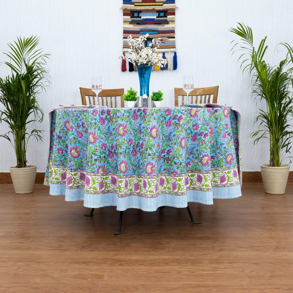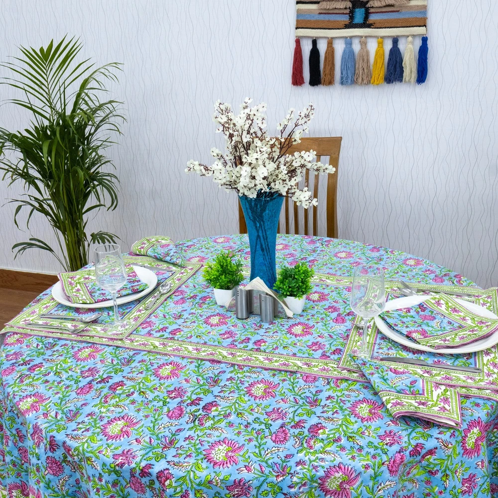 WELCOME Beautifully handcrafted Wooden Block Printed Cotton Table Cover, created by local artisans of India,designed using classic, ethnic and royal prints as inspirations. Our block printed textiles are not only eco-friendly but also sustainable made using finest quality cottons and best quality organic printing colors. This Table Cover is the perfect go-to shot for accessorizing your table. It stands out as a statement piece, delighting the surrounding space with fine aesthetics. To check our more of our product range, please visit our shop link - https://www.ebay.com/str/homespuncraft Product Details - Design: Floral, Royal & Classic Technique / Print: Wooden Block Printedwith Hands Material / Yarn Type: 100% Natural Cotton (Eco-Friendly) Color : Blue and Pink Dimensions/Sizes Available - Shape: Rectangle/Square 4 Seater: 60 X 60 inches (150 X150 Cm.) 4 Seater: 72 X 72 inches (180 X180 Cm.) 6 Seater: 60 X 90 Inches (150 X 225 Cm.) 6 seater: 48 x 102 Inches (120 X 260 Cm.) 8 Seater: 90 X 90 Inches (225 X 225 Cm.) 8 Seater: 72 X 108 Inches (180 X 275 Cm.) 8 Seater: 110 X 110 Inches (280 X 280 Cm.) 10 Seater: 72 X 118 Inches(180 X 300 Cm.) 12 Seater: 72 X 135 Inches (180 X 345 Cm.) 12 Seater: 72 X 140 Inches (180 X 355 Cm.) 12 Seater: 80 X 120 Inches (200 X 305 Cm.) 14 Seater: 72 X 160 Inches (180 X 405 Cm.) 16 Seater: 72 X 180 Inches (180 X 460 Cm.) 16 Seater: 72 X 190 Inches (180 X 480 Cm.) Shape: Round 4 Seater round: 60 X 60 Inches Round (150 X 150 Cm. Round) 4 Seater round: 72 X 72 Inches Round (180 X 180 Cm. Round) 6 Seater round: 90 x 90 Inches Round (225 x 225 Cm. Round) 8 Seater round: 110 x 110 Inches Round (280 x 280 Cm. Round) Table Runner - Wide - 20 Inches for all sizes (50 Cm. for all sizes) Length - Same length as the length of the table cover selected For Example, for a 72 x 140 Inches table cover order, the runner size would be 20 x 140 Inches. For a 60 x 90 Inches table cover order, the runner size would be 20 x 90 Inches and so on… Napkins: 16 X 16 Inches (40 X 40 Cm.) Table Mats: 13 x 18 Inches (35 x 45 Cm.) Number of Napkins and Table Mats shall be same as per the number of seater ordered. For Example, for a 4 seatertable cover ordered, it would be a set of 4 napkins and 4 table mats. For a 6 seatertable cover ordered, it would be a set of 6 napkins and 6 table mats and so on… Wash & Care Recommendations Wash Separately Preferably If Machine wash: Gentle cycle at 30°C If Hand wash: In Cold Water with mild or organic liquid detergents and air dry for longer durability and colour vibrancy Tumble dry: Low setting Iron: Low heat setting //Do not Soak. Do not use harsh detergents. Do not bleach. This Hand Block Printed Cotton Table Cover can be used for: Dining Table ,Coffee Table , Centre Table , etc NOTE-1 - All our textiles are handmade and are worked on by multiple artisans and the product goes through multiple hand-processes. Hence, there could be a very little variation than the actual look from the photos, which indeed is the characteristic of this handmade textile giving it an authentic handmadelook. NOTE-2 - Actual colors may slightly vary from the colors shown in the pictures due to different monitor screen settings, photography setup with natural lights and the nature of the product, being 100% hand made. NOTE-3 - Also please note that as per the policy mentioned on Ebay on the product page,any import duty, taxes occurred in the client's country will be borne by the client. Normally it does not occur. Thank You very much for visiting our store.