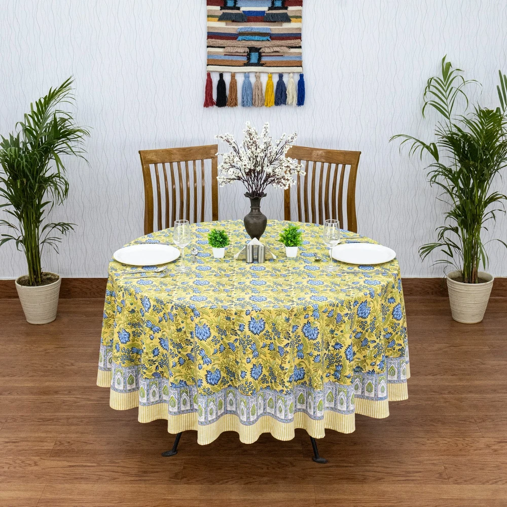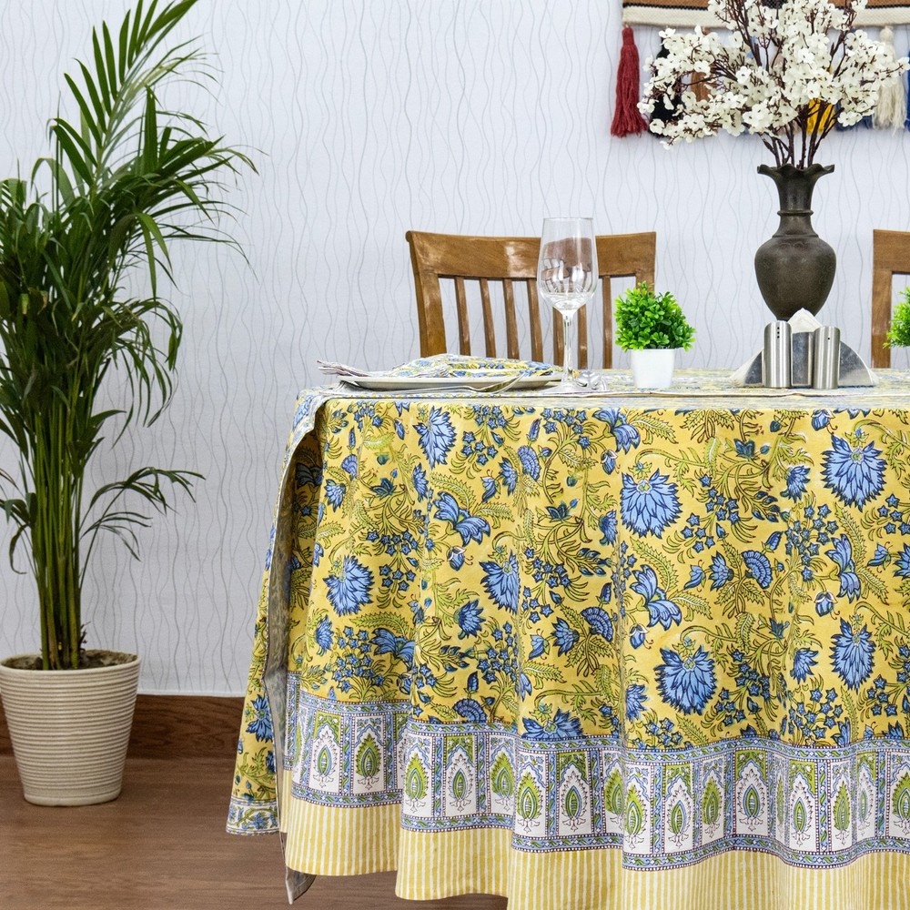 WELCOME Beautifully handcrafted Wooden Block Printed Cotton Table Cover, created by local artisans of India,designed using classic, ethnic and royal prints as inspirations. Our block printed textiles are not only eco-friendly but also sustainable made using finest quality cottons and best quality organic printing colors. This Table Cover is the perfect go-to shot for accessorizing your table. It stands out as a statement piece, delighting the surrounding space with fine aesthetics. To check our more of our product range, please visit our shop link - https://www.ebay.com/str/homespuncraft Product Details - Design: Floral, Royal & Classic Technique / Print: Wooden Block Printedwith Hands Material / Yarn Type: 100% Natural Cotton (Eco-Friendly) Color : Yellow and Blue Dimensions/Sizes Available - Shape: Rectangle/Square 4 Seater: 60 X 60 inches (150 X150 Cm.) 4 Seater: 72 X 72 inches (180 X180 Cm.) 6 Seater: 60 X 90 Inches (150 X 225 Cm.) 6 seater: 48 x 102 Inches (120 X 260 Cm.) 8 Seater: 90 X 90 Inches (225 X 225 Cm.) 8 Seater: 72 X 108 Inches (180 X 275 Cm.) 8 Seater: 110 X 110 Inches (280 X 280 Cm.) 10 Seater: 72 X 118 Inches(180 X 300 Cm.) 12 Seater: 72 X 135 Inches (180 X 345 Cm.) 12 Seater: 72 X 140 Inches (180 X 355 Cm.) 12 Seater: 80 X 120 Inches (200 X 305 Cm.) 14 Seater: 72 X 160 Inches (180 X 405 Cm.) 16 Seater: 72 X 180 Inches (180 X 460 Cm.) 16 Seater: 72 X 190 Inches (180 X 480 Cm.) Shape: Round 4 Seater round: 60 X 60 Inches Round (150 X 150 Cm. Round) 4 Seater round: 72 X 72 Inches Round (180 X 180 Cm. Round) 6 Seater round: 90 x 90 Inches Round (225 x 225 Cm. Round) 8 Seater round: 110 x 110 Inches Round (280 x 280 Cm. Round) Table Runner - Wide - 20 Inches for all sizes (50 Cm. for all sizes) Length - Same length as the length of the table cover selected For Example, for a 72 x 140 Inches table cover order, the runner size would be 20 x 140 Inches. For a 60 x 90 Inches table cover order, the runner size would be 20 x 90 Inches and so on… Napkins: 16 X 16 Inches (40 X 40 Cm.) Table Mats: 13 x 18 Inches (35 x 45 Cm.) Number of Napkins and Table Mats shall be same as per the number of seater ordered. For Example, for a 4 seatertable cover ordered, it would be a set of 4 napkins and 4 table mats. For a 6 seatertable cover ordered, it would be a set of 6 napkins and 6 table mats and so on… Wash & Care Recommendations Wash Separately Preferably If Machine wash: Gentle cycle at 30°C If Hand wash: In Cold Water with mild or organic liquid detergents and air dry for longer durability and colour vibrancy Tumble dry: Low setting Iron: Low heat setting //Do not Soak. Do not use harsh detergents. Do not bleach. This Hand Block Printed Cotton Table Cover can be used for: Dining Table ,Coffee Table , Centre Table , etc NOTE-1 - All our textiles are handmade and are worked on by multiple artisans and the product goes through multiple hand-processes. Hence, there could be a very little variation than the actual look from the photos, which indeed is the characteristic of this handmade textile giving it an authentic handmadelook. NOTE-2 - Actual colors may slightly vary from the colors shown in the pictures due to different monitor screen settings, photography setup with natural lights and the nature of the product, being 100% hand made. NOTE-3 - Also please note that as per the policy mentioned on Ebay on the product page,any import duty, taxes occurred in the client's country will be borne by the client. Normally it does not occur. Thank You very much for visiting our store.