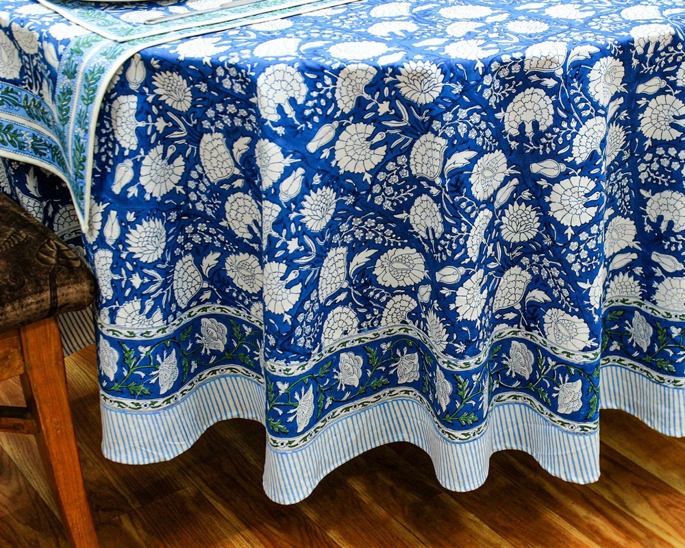 Handblock Printed Round Cotton Tablecloth for Dining and Home Decor