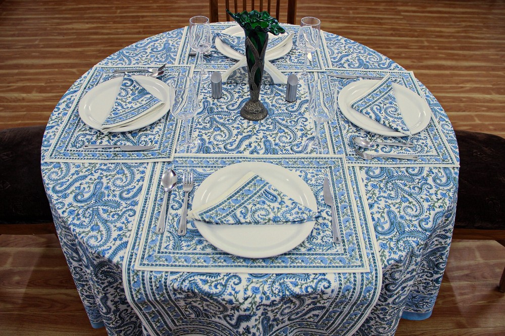 WELCOME Beautifully handcrafted Wooden Block Printed Cotton Table Cover, created by local artisans of India,designed using classic, ethnic and royal prints as inspirations. Our block printed textiles are not only eco-friendly but also sustainable made using finest quality cottons and best quality organic printing colors. This Table Cover is the perfect go-to shot for accessorizing your table. It stands out as a statement piece, delighting the surrounding space with fine aesthetics. To check our more of our product range, please visit our shop link - https://www.ebay.com/str/homespuncraft Product Details - Design: Floral, Royal & Classic Technique / Print: Wooden Block Printedwith Hands Material / Yarn Type: 100% Natural Cotton (Eco-Friendly) Color : Blue and White Dimensions/Sizes Available - Shape: Rectangle/Square 4 Seater: 60 X 60 inches (150 X150 Cm.) 4 Seater: 72 X 72 inches (180 X180 Cm.) 6 Seater: 60 X 90 Inches (150 X 225 Cm.) 6 seater: 48 x 102 Inches (120 X 260 Cm.) 8 Seater: 90 X 90 Inches (225 X 225 Cm.) 8 Seater: 72 X 108 Inches (180 X 275 Cm.) 8 Seater: 110 X 110 Inches (280 X 280 Cm.) 10 Seater: 72 X 118 Inches(180 X 300 Cm.) 12 Seater: 72 X 135 Inches (180 X 345 Cm.) 12 Seater: 72 X 140 Inches (180 X 355 Cm.) 12 Seater: 80 X 120 Inches (200 X 305 Cm.) 14 Seater: 72 X 160 Inches (180 X 405 Cm.) 16 Seater: 72 X 180 Inches (180 X 460 Cm.) 16 Seater: 72 X 190 Inches (180 X 480 Cm.) Shape: Round 4 Seater round: 60 X 60 Inches Round (150 X 150 Cm. Round) 4 Seater round: 72 X 72 Inches Round (180 X 180 Cm. Round) 6 Seater round: 90 x 90 Inches Round (225 x 225 Cm. Round) 8 Seater round: 110 x 110 Inches Round (280 x 280 Cm. Round) Table Runner - Wide - 20 Inches for all sizes (50 Cm. for all sizes) Length - Same length as the length of the table cover selected For Example, for a 72 x 140 Inches table cover order, the runner size would be 20 x 140 Inches. For a 60 x 90 Inches table cover order, the runner size would be 20 x 60 Inches and so on… Napkins: 16 X 16 Inches (40 X 40 Cm.) Table Mats: 13 x 18 Inches (35 x 45 Cm.) Number of Napkins and Table Mats shall be same as per the number of seater ordered. For Example, for a 4 seatertable cover ordered, it would be a set of 4 napkins and 4 table mats. For a 6 seatertable cover ordered, it would be a set of 6 napkins and 6 table mats and so on… Wash & Care Recommendations Wash Separately Preferably If Machine wash: Gentle cycle at 30°C If Hand wash: In Cold Water with mild or organic liquid detergents and air dry for longer durability and colour vibrancy Tumble dry: Low setting Iron: Low heat setting //Do not Soak. Do not use harsh detergents. Do not bleach. This Hand Block Printed Cotton Table Cover can be used for: Dining Table ,Coffee Table , Centre Table , etc NOTE-1 - All our textiles are handmade and are worked on by multiple artisans and the product goes through multiple hand-processes. Hence, there could be a very little variation than the actual look from the photos, which indeed is the characteristic of this handmade textile giving it an authentic handmadelook. NOTE-2 - Actual colors may slightly vary from the colors shown in the pictures due to different monitor screen settings, photography setup with natural lights and the nature of the product, being 100% hand made. NOTE-3 - Also please note that as per the policy mentioned on Ebay on the product page,any import duty, taxes occurred in the client's country will be borne by the client. Normally it does not occur. Thank You very much for visiting our store.