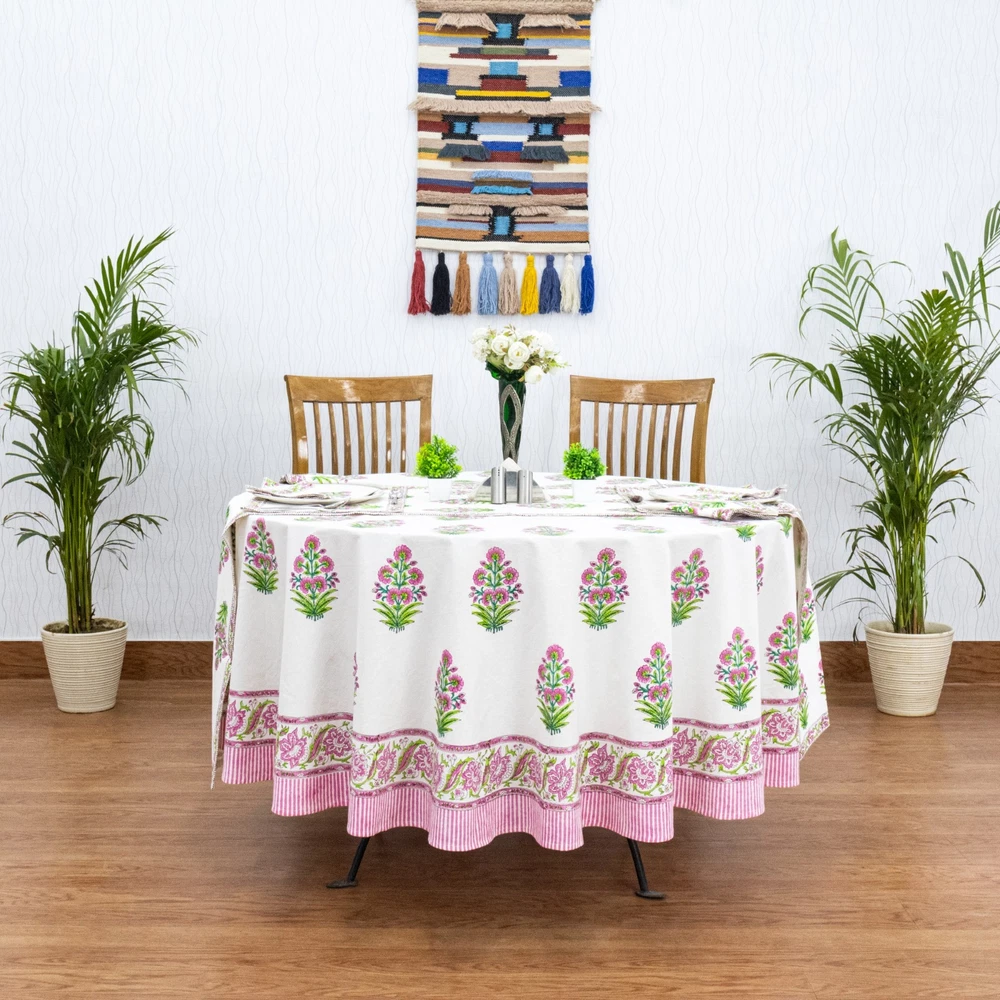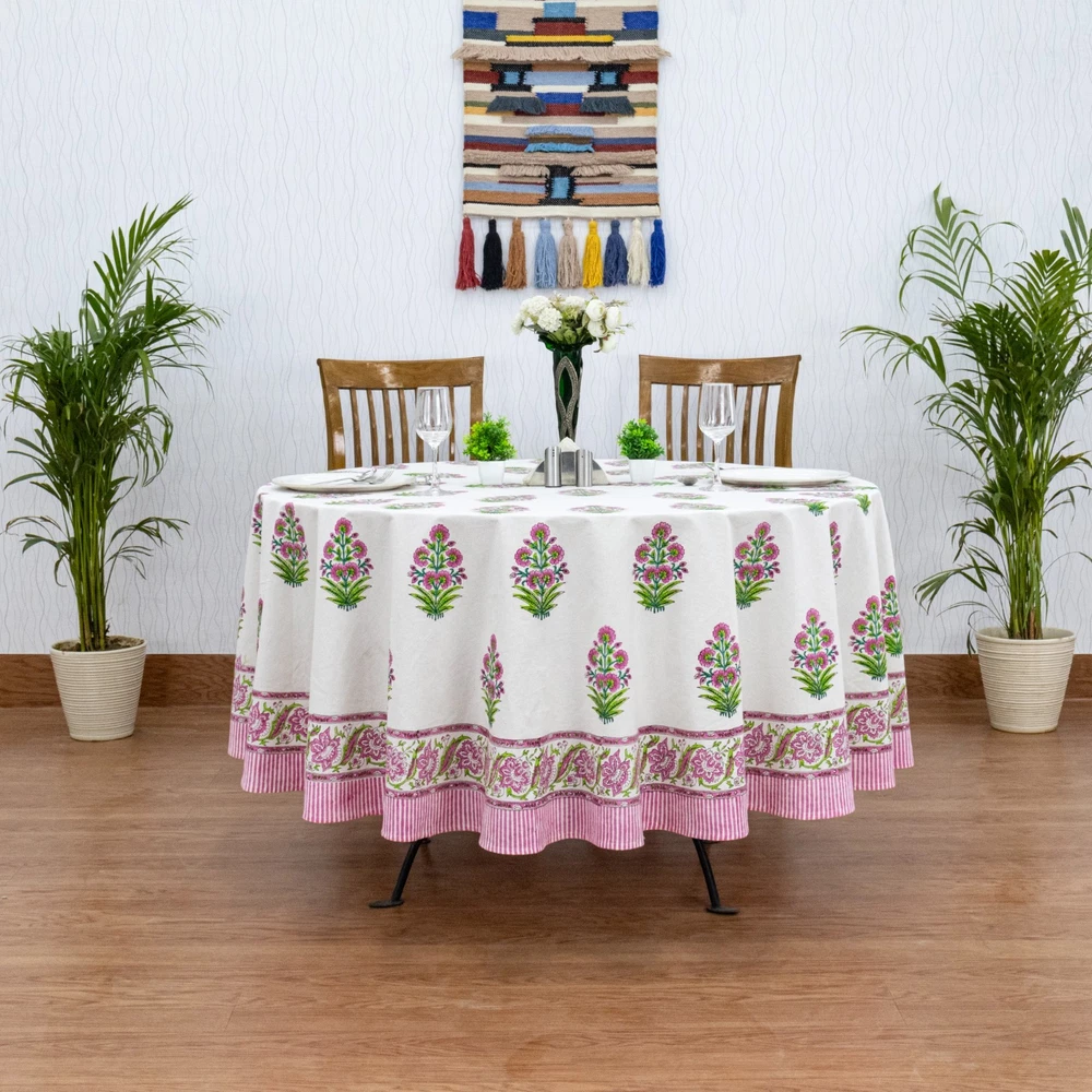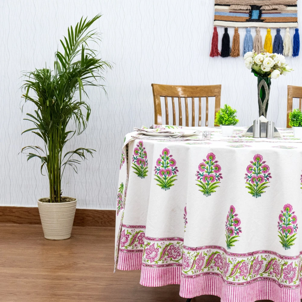 WELCOME Beautifully handcrafted Wooden Block Printed Cotton Table Cover, created by local artisans of India,designed using classic, ethnic and royal prints as inspirations. Our block printed textiles are not only eco-friendly but also sustainable made using finest quality cottons and best quality organic printing colors. This Table Cover is the perfect go-to shot for accessorizing your table. It stands out as a statement piece, delighting the surrounding space with fine aesthetics. To check our more of our product range, please visit our shop link - https://www.ebay.com/str/homespuncraft Product Details - Design: Floral, Royal & Classic Technique / Print: Wooden Block Printedwith Hands Material / Yarn Type: 100% Natural Cotton (Eco-Friendly) Color : White and Pink Dimensions/Sizes Available - Shape: Rectangle/Square 4 Seater: 60 X 60 inches (150 X150 Cm.) 4 Seater: 72 X 72 inches (180 X180 Cm.) 6 Seater: 60 X 90 Inches (150 X 225 Cm.) 6 seater: 48 x 102 Inches (120 X 260 Cm.) 8 Seater: 90 X 90 Inches (225 X 225 Cm.) 8 Seater: 72 X 108 Inches (180 X 275 Cm.) 8 Seater: 110 X 110 Inches (280 X 280 Cm.) 10 Seater: 72 X 118 Inches(180 X 300 Cm.) 12 Seater: 72 X 135 Inches (180 X 345 Cm.) 12 Seater: 72 X 140 Inches (180 X 355 Cm.) 12 Seater: 80 X 120 Inches (200 X 305 Cm.) 14 Seater: 72 X 160 Inches (180 X 405 Cm.) 16 Seater: 72 X 180 Inches (180 X 460 Cm.) 16 Seater: 72 X 190 Inches (180 X 480 Cm.) Shape: Round 4 Seater round: 60 X 60 Inches Round (150 X 150 Cm. Round) 4 Seater round: 72 X 72 Inches Round (180 X 180 Cm. Round) 6 Seater round: 90 x 90 Inches Round (225 x 225 Cm. Round) 8 Seater round: 110 x 110 Inches Round (280 x 280 Cm. Round) Table Runner - Wide - 20 Inches for all sizes (50 Cm. for all sizes) Length - Same length as the length of the table cover selected For Example, for a 72 x 140 Inches table cover order, the runner size would be 20 x 140 Inches. For a 60 x 90 Inches table cover order, the runner size would be 20 x 90 Inches and so on… Napkins: 16 X 16 Inches (40 X 40 Cm.) Table Mats: 13 x 18 Inches (35 x 45 Cm.) Number of Napkins and Table Mats shall be same as per the number of seater ordered. For Example, for a 4 seatertable cover ordered, it would be a set of 4 napkins and 4 table mats. For a 6 seatertable cover ordered, it would be a set of 6 napkins and 6 table mats and so on… Wash & Care Recommendations Wash Separately Preferably If Machine wash: Gentle cycle at 30°C If Hand wash: In Cold Water with mild or organic liquid detergents and air dry for longer durability and colour vibrancy Tumble dry: Low setting Iron: Low heat setting //Do not Soak. Do not use harsh detergents. Do not bleach. This Hand Block Printed Cotton Table Cover can be used for: Dining Table ,Coffee Table , Centre Table , etc NOTE-1 - All our textiles are handmade and are worked on by multiple artisans and the product goes through multiple hand-processes. Hence, there could be a very little variation than the actual look from the photos, which indeed is the characteristic of this handmade textile giving it an authentic handmadelook. NOTE-2 - Actual colors may slightly vary from the colors shown in the pictures due to different monitor screen settings, photography setup with natural lights and the nature of the product, being 100% hand made. NOTE-3 - Also please note that as per the policy mentioned on Ebay on the product page,any import duty, taxes occurred in the client's country will be borne by the client. Normally it does not occur. Thank You very much for visiting our store.