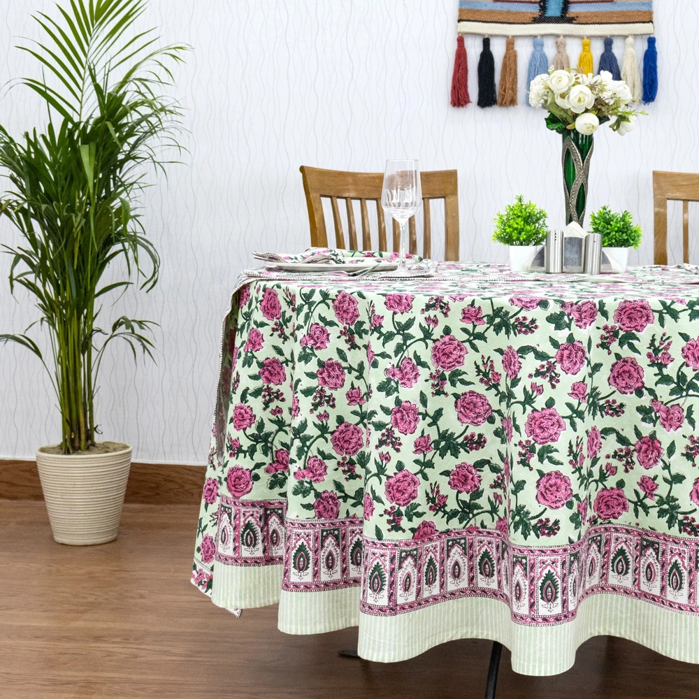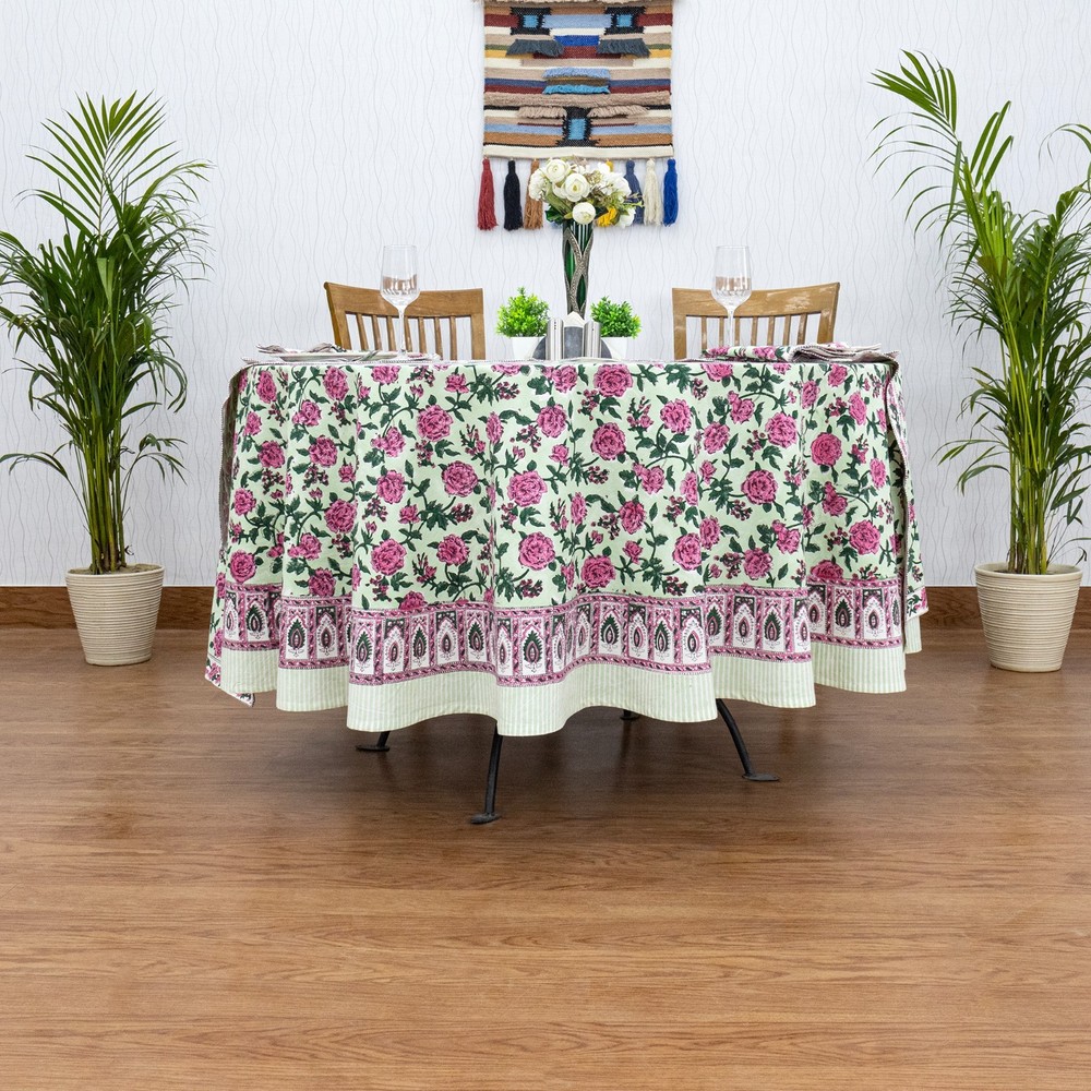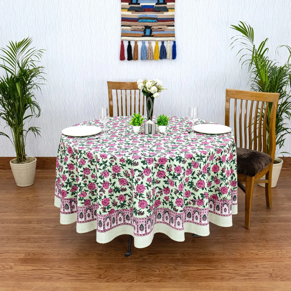 Handblock Printed Round Cotton Tablecloth for Dining and Home Decor
