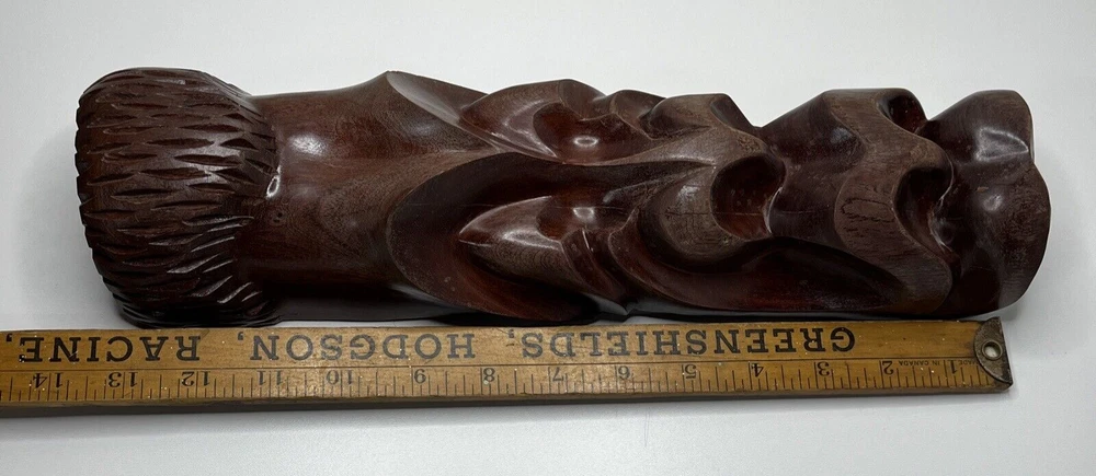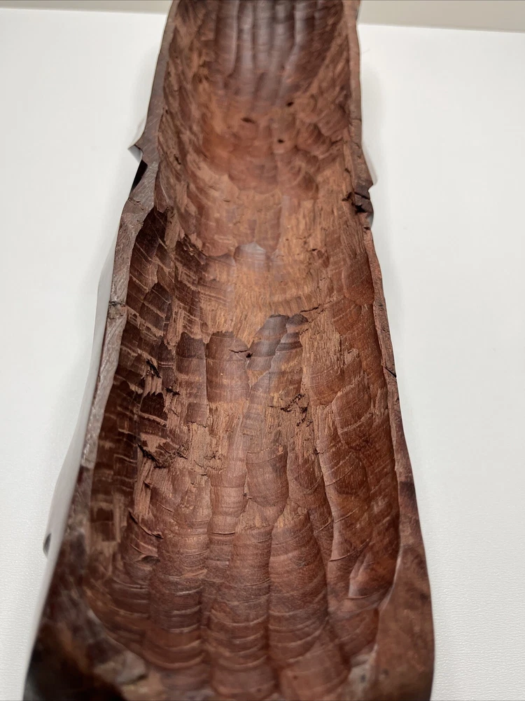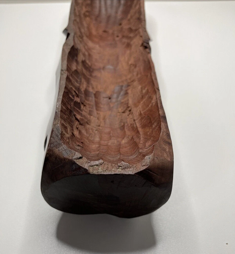 The unknown provenance adds an air of mystery, inviting speculation about its origins and the culture it may represent. Its warm, natural tones and organic material evoke a sense of connection to the artist and the story behind the piece. 13 ½ inch x 3½ inch 2.45 lbs