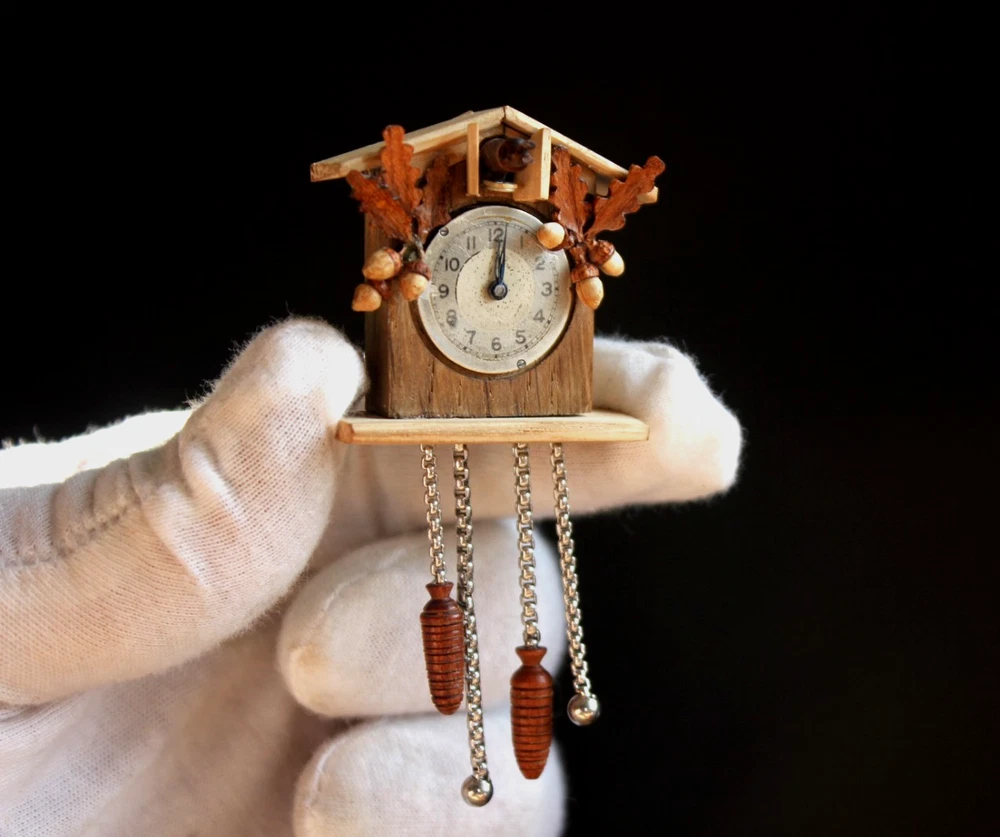 Handcrafted 1:12 Scale Miniature Cuckoo Clock by Artisan PigeonOak