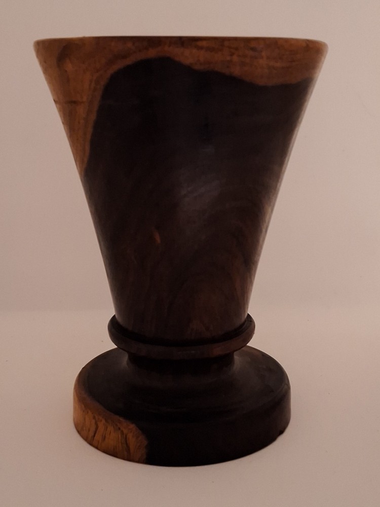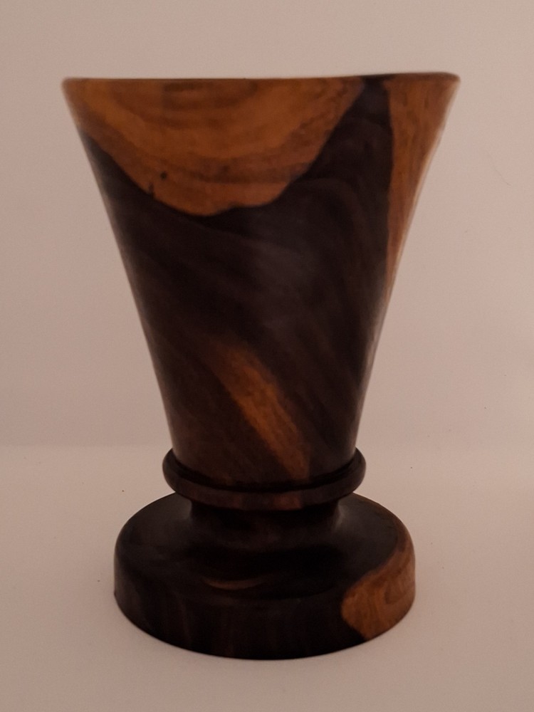 Enhance your space with the natural beauty of a Handcrafted 5" Wood Vase. The round, brown hue of the wood brings a touch of the earth's warmth into any room, making it a perfect complement to your decorative style. With dimensions of 5 inches in height and 3.5 inches in width, this footed/pedestal vase serves as a stable and stylish base as a standalone piece to add character to your decor.This unbranded, decorative vase embodies the charm of nature with its organic material and simple yet elegant design. It is not customized, ensuring that each piece is as intended, and no additional parts are required for its display. Whether you're accenting your living room or adding a rustic element to your office, this wood vase is a serene addition to any setting.