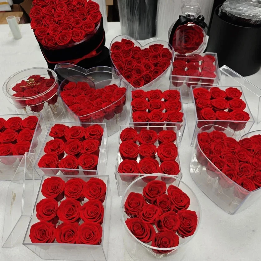This handcrafted acrylic box features a unique heart and square design, perfect for storing small items or gifting your loved one. The box is adorned with beautiful decorative flowers and wreaths, making it a great addition to any holiday decor. The box is made of preserved fresh flower material and comes in a carton box packaging. It is applicable for various occasions such as weddings, graduations, and holidays like Valentine's Day and Mother's Day. The box is lightweight, weighing only 0.5kg, and measures 8x8x12 cm in size. You can also customize the color of the box to suit your preferences.