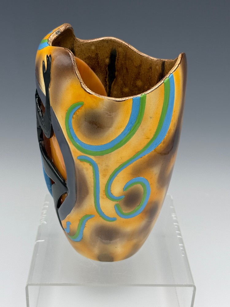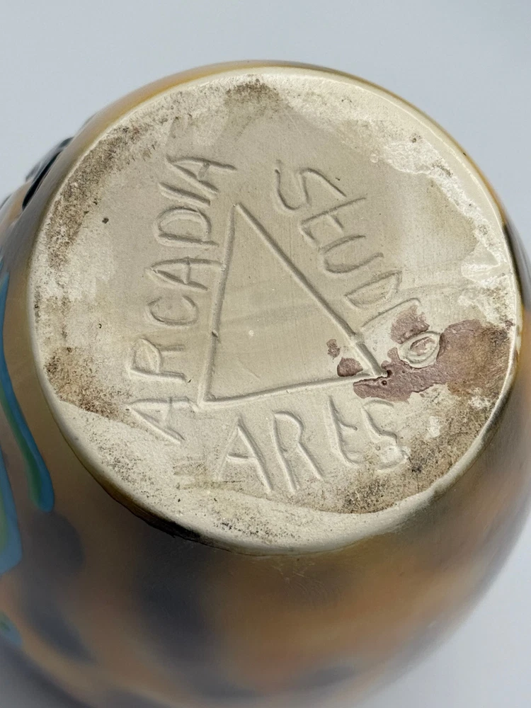 Up for your consideration is this very interesting studio crafted vase. It is a combination of ceramic with a slag glass insert. This measures 5 1/2" across and 8 1/2" in height. The base is signed, but we could not find any information out about this studio. There is a small scuff on the back and a teeny nick shown in the photos that may be from when the vase was made. Please check out our photos and message with any questions. Thank you for visiting. This is a fun retirement gig for us. We try our best to describe all our items as accurately as possible. You can count on customer service being our priority. Got any questions? Feel free to drop us a message via eBay anytime. We are happy to combine shipping of items. If you purchase multiple items and we can combine them safely, we will refund you for the over payment of shipping. Please do not worry, we do this everyday. Please be patient for a response from us, we are not always online. We take pride in delivering 100% satisfaction, evidenced by our feedback. If you aren't entirely happy with your purchase, don't wait! Just drop us a line. We'd much rather partner with you than have negative feedback left. We aim to ship your items within 3 days of the sale. Most of our packages will be shipped out USPS or FedEx. We only use quality shipping materials and do not pack with old dirty boxes and newspaper. We take pride in making sure your items are treated with detailed attention so you will receive them intact. Our goal is to get your treasures to you safely. Occasionally you may see a refund from us for shipping costs after your items are packed. We are just passing back any over payments for shipping paid. If you get a damaged package, don’t worry! Just give us a shout and we'll sort it out.