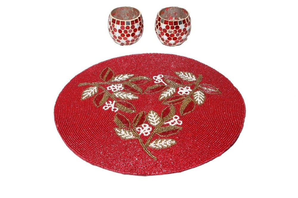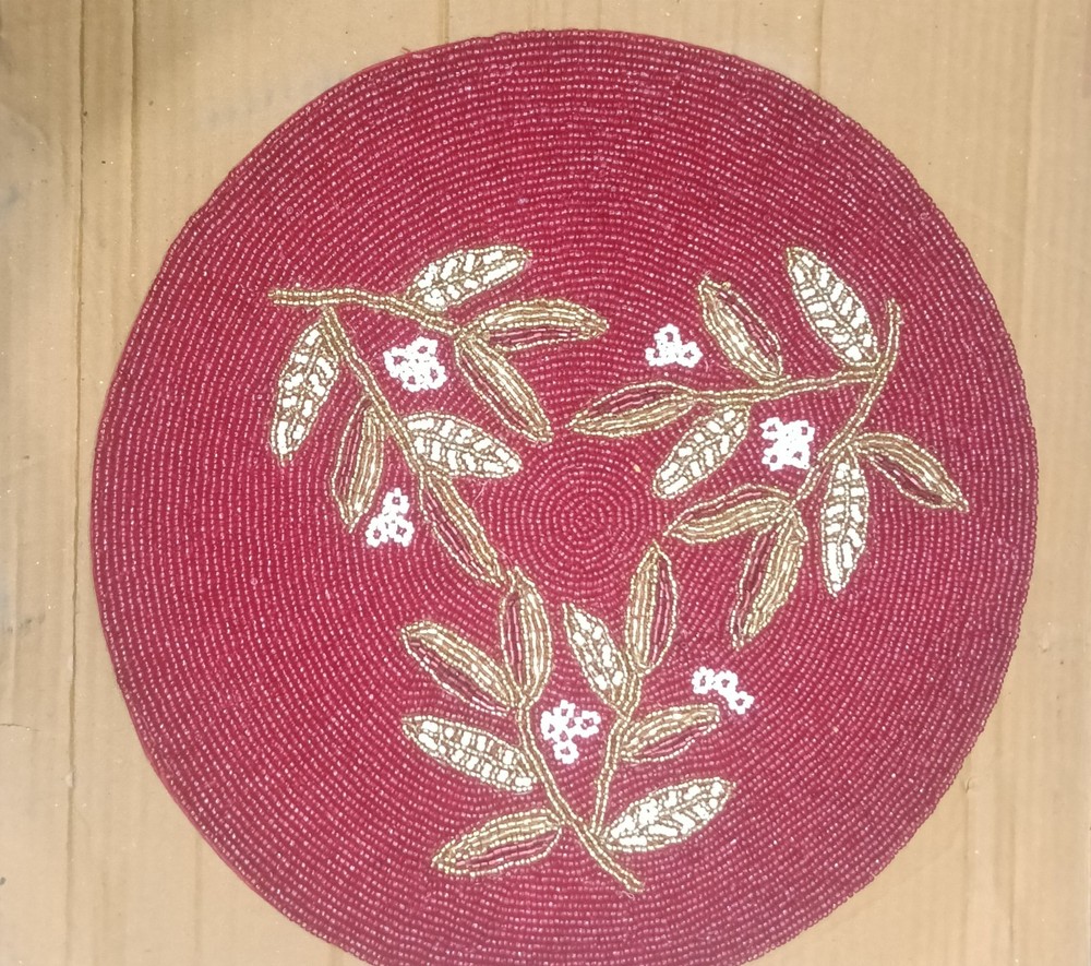 Bring home a touch of timeless Indian craftsmanship with this beautifully handcrafted beaded placemat. Inspired by traditional artisan work seen in royal Indian homes and festive gatherings, each piece reflects patience, detail, and cultural elegance. In many Indian households, the dining table is not just a place to eat—it’s where stories are shared, traditions are passed down, and memories are created. This handcrafted mat becomes a part of those moments, adding charm without overpowering your décor. The intricate beadwork creates a beautiful textured surface that pairs perfectly with both modern and traditional interiors. Use it under dinner plates, serving bowls, candles, or even as a centerpiece base to instantly elevate your space. Diameter: 14 Inches Quantity : Set of 2