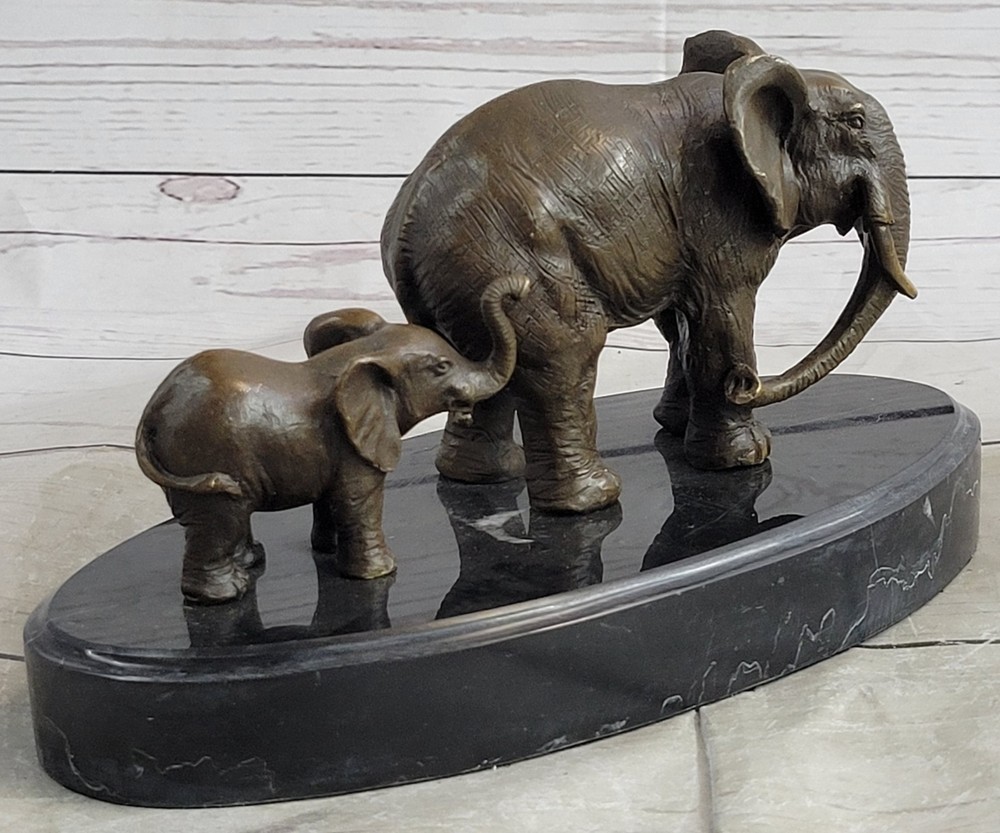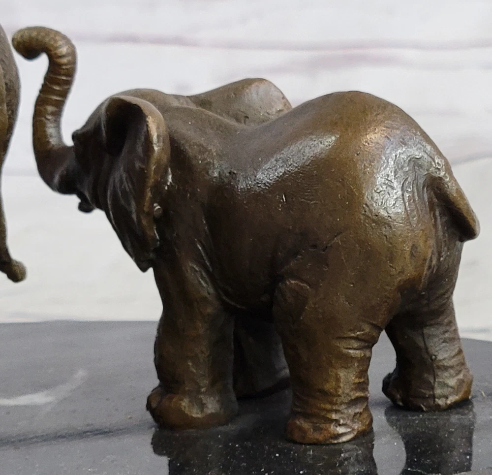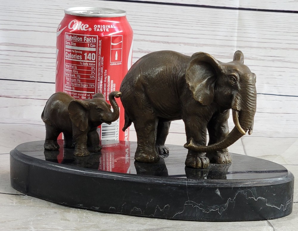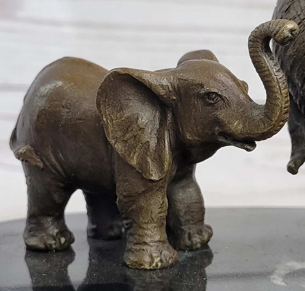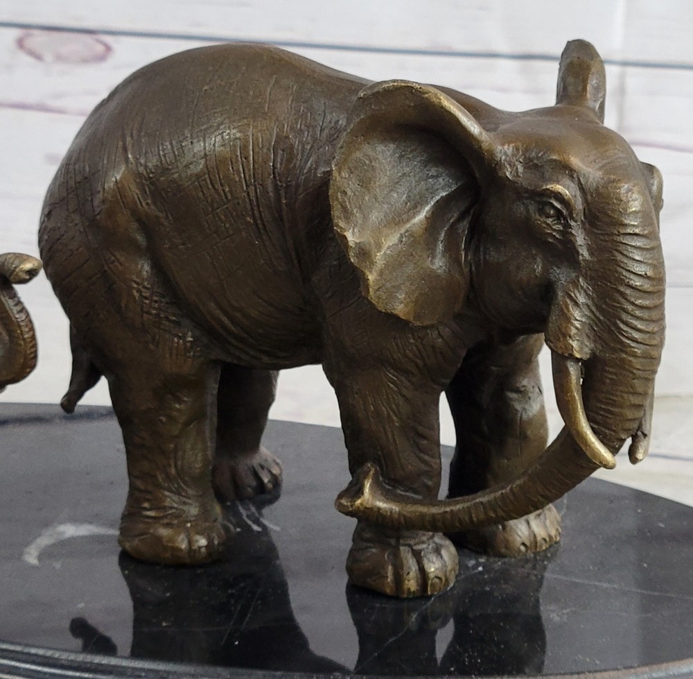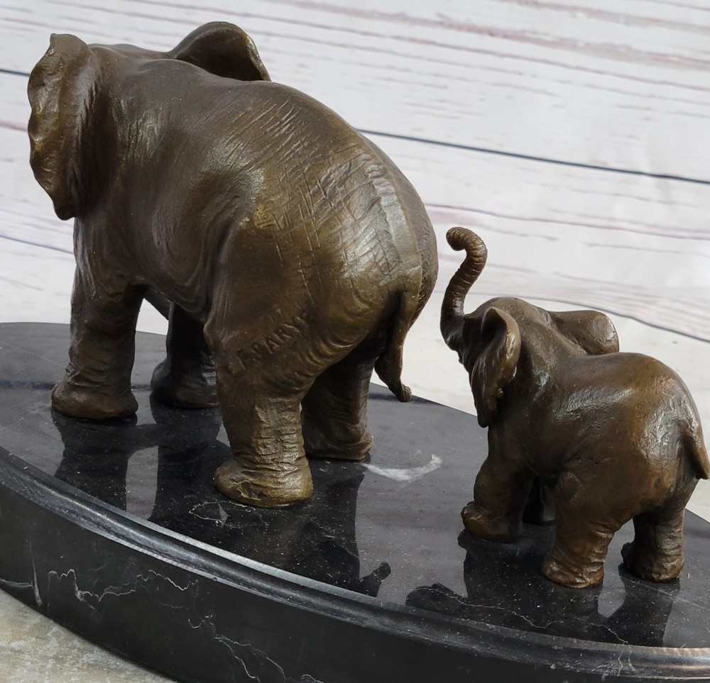 Bronze Sculpture Hand Made Statue Animal Wildlife African Elephants Elephant Art Bronze Sculpture Hand Made Statue Animal Wildlife African Elephants Elephant Art Condition : This sculpture is in perfect condition. Bronze Dimensions with Marble Base: Height 5" x Width 8.5" Marble Dimensions: Diameter 8.5" Height without base:4" Weight:5 LBS Inventory:26AL5284662 Behold the tender bond between a mother elephant and her calf, mirrored in the animal kingdom. With utmost care and love, the mother elephant strides beside her young one, providing a sense of protection and guidance. This heartwarming scene captures a blissful moment of harmony and joy. These magnificent creatures, depicted in this bronze sculpture, are sure to bring delight and wonder into your home. The sculpture, expertly crafted using the lost wax method, showcases intricate details that accentuate the natural beauty of the elephants. From the texture of their skin to the gentle sway of their steps, every aspect is meticulously captured. The piece stands on a sleek black marble base, elevating its aesthetic appeal and providing a sturdy foundation. To signify its artistic quality and provenance, the sculpture is signed by the esteemed artist Barye. This signature not only adds value but also serves as a testament to the artistry and craftsmanship involved in its creation. Display this remarkable piece in your living space and let it serve as a symbol of love, familial bonds, and the awe-inspiring beauty of the animal kingdom. inkfrog terapeak Mother and Child African Elephant Animal Kingdom Barye Bronze Sculpture Figurine www.bronzhaus.com Video will open in a new window Using the eBay App? Paste link into a browser window: [isdntekvideo] Shipping Terms : Most of our items are shipped via USPS (United States Postal Service) mail or UPS. Most orders are shipped within 24-48 hours of purchase. Please be aware that not all items are available for USPS shipping due to size and weight. We do ship to Hawaii, Alaska, Canada, Puerto Rico, APO/AE, and U.S. Virgin Islands, however, an additional charge may be required. Please contact us before making any purchases in these areas. For Non-USA customers, you may be responsible for all duty, tax, brokerage fees that may be due upon delivery (shipping costs cover freight charges only). We also ship internationally. Please refer to the "Shipping and Handling" chart for the rates for each area. Payment : We accept just about any form of payment. PayPal, Master Card, Visa or American Express credit cards. Money orders, cashiers checks, and even personal or business checks. For governmental institutions, we will also accept a purchase order. Please understand that for personal or business checks we have to wait for the check to clear (usually 7 days) before shipping. Condition : New Detailed Hand Crafted Hot Cast Bronze Satisfaction Guaranteed. This is Stock Photo, Slight Color Variation!! Listing and template services provided by inkFrog