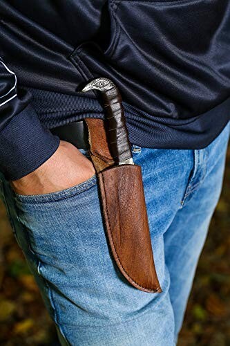 Beautiful Handcrafted Damascus Steel Bowie Knife Fixed Blade Best Gift For Him Looking For An Unusual Hand Crafted Hunting Knife? Here It Is! A Compact Outdoors Hunting Knife, Classic Bowie Hunting Knife Custom Hand Forged High Quality Damascus Steel Hunting Knife , Easy-To-Carry, Beautiful Hunting Knife, And Made Of Powerful Damascus Steel. We Take Great Pride In Creating By Hand, Our Hunting Knife Crafted With Damascus Steel Wooden Handle The Highest Quality Materials. Our Bowie Hunting Knife Is Also Designed To Be Used As An All-Around Tool For Camping, Hunting, Fishing, And Other Outdoor Activities. Crafted With Precision And Designed For Durability, Best Hunting Knife. This Hunting Knife Is The Perfect Companion For Any Hunting, Camping, Or Survival Adventure. Here's Why You'll Love It: Premium Quality Innovative, Traditional, Precise Ergonomic Handle, With Classic Look Easy To Clean, Very Hygienic Custom Handmade Stainless Steel Blade User-friendliness Best Gift For Your Love Once & Hunter Friends. High Quality Hunting Knife Which Can Be Used For Camping. Damascus Steel Hunting Knife, Wood Handle, With Leather Sheath. PRODUCT SPECIFICATION Handmade Leather Sheath Included High Quality Materials for Durability Fully Handmade Item, No Pre-Bought Parts RESTRICTION You Must Be Over 18 Years Of Age To Purchase These Products, The Buyer is Fully Responsible For Local Laws And Regulations Concerning the Purchase And Possession Of Knives, Swords, And Other Cutlery Tools, By Making A Purchase You Are Confirming Our Age Policy. HAVE A SAFE SHOPPING PLEASE LEAVE A HONEST REVIEW