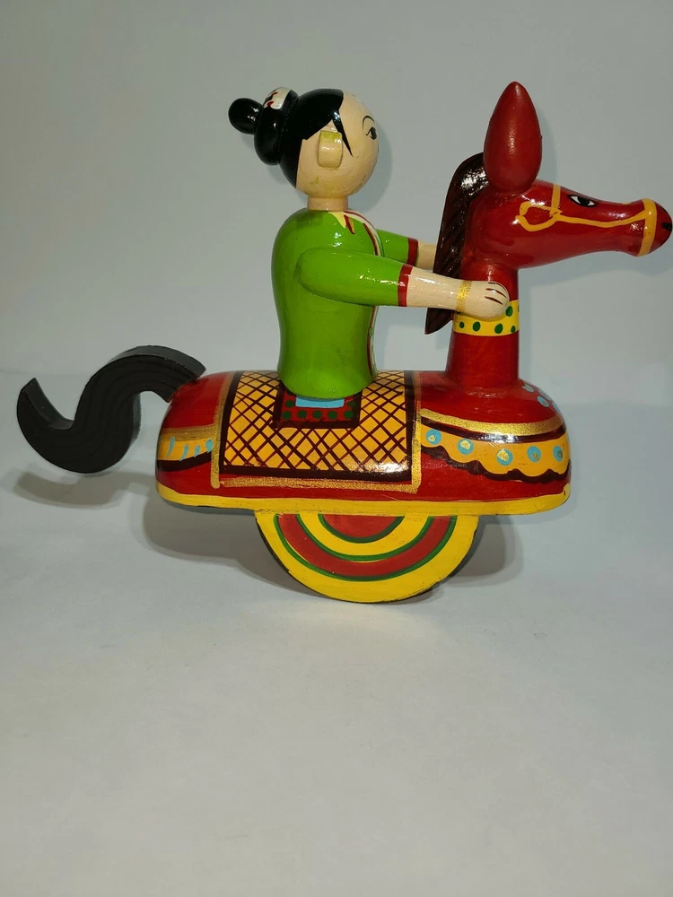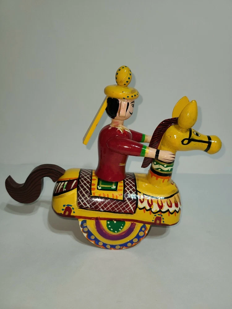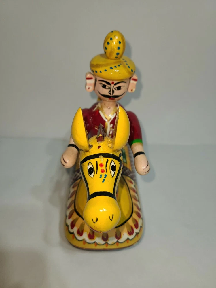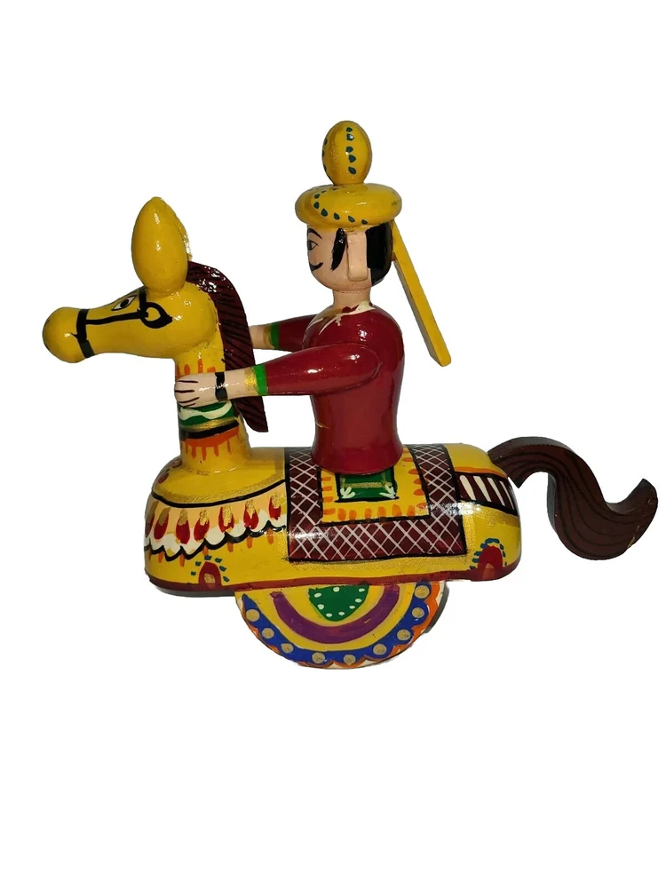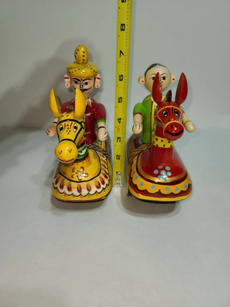 Channapatna toys are a particular form of wooden toys that are manufactured in the town of Channapatna, a city located 60 km south-west of Bangalore in the Indian state of Karnataka and has led to Channapatna being known as Gombegala Ooru (toy-town). Traditionally, the craft involved lacquering the wood of the Wrightia tinctoria tree, colloquially known as ivory-wood, though rosewood and sandalwood were also occasionally used. The lacquering art of Channapatna is known for its mix of vegetable dye and food grade pigments, with natural residue obtained from the trees of Amaltaas and Kusum in West Bengal and Orissa. Beautifully Crafted, Vibrant Colors! A Bit of A Crack on Bottom of Male Rider's Horse, May be Natural, and a Bit of Missing Paint, Also May Be Natural. Please keep in mind most things I sell are vintage or antique rescue items. They are not new unless otherwise noted. Items are off-the-shelf and sold in the condition they are found in (with the exception of giving a light clean up) While I do my best to describe my items accurately, including damage and flaws, Im only human and can make mistakes. Please Look Closely to Make Sure You Will Be Happy With Your Purchase. Please do not hesitate to ask questions! I want happy customers and am here to help, so reach out if you need any more information or pictures. I love helping people find what they’re looking for! Feedback is super important to me, and I appreciate the time taken to leave a review. If you are dissatisfied in any way, reach out to me before leaving comments, and I will try to address your concerns. I know I can't wait to get something I’ve purchased online, so I typically get your order out the door in 24-48 hours. Holidays & weekends don’t always allow it to ship as quickly as I’d like and once it leaves my hands, it’s up to the good ol’ USPS to get it to you but understand that delays do happen. Please make sure your address is up to date with ebay as i can't ship to a different address. Thanks for Looking!