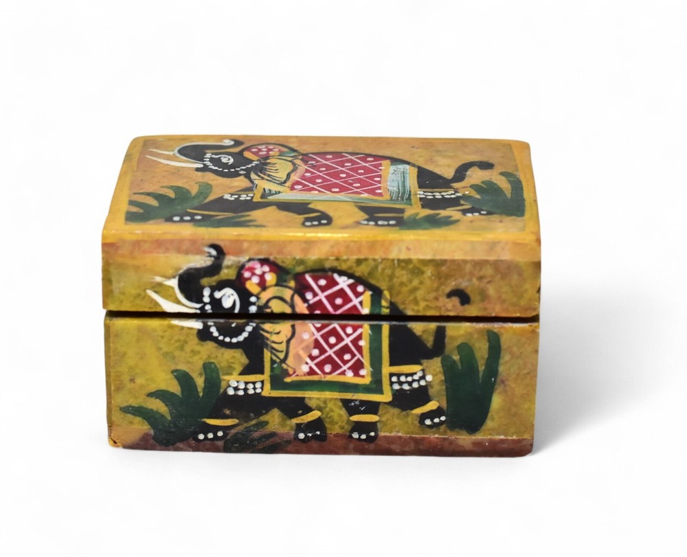 Enhance your space with the LILAN EXPORT Box Elephant Painting, a stunning square-shaped artwork that embodies the spirit of Art Deco style. Perfect for any room, this small-sized masterpiece is suitable for a mini candle or wardrobe display, making it versatile for multiple uses. The painting features a solid pattern with a vibrant multicolor finish, bringing a touch of elegance and character to your decor. Crafted from high-quality marble, the piece weighs 250 grams, offering both durability and a luxurious feel. It's a handcrafted creation from India, reflecting the craftsmanship of the artist with every brushstroke. Whether you're an art enthusiast or looking to add a unique piece to your home, this original work from the 21st century celebrates the timeless appeal of artistic expression.