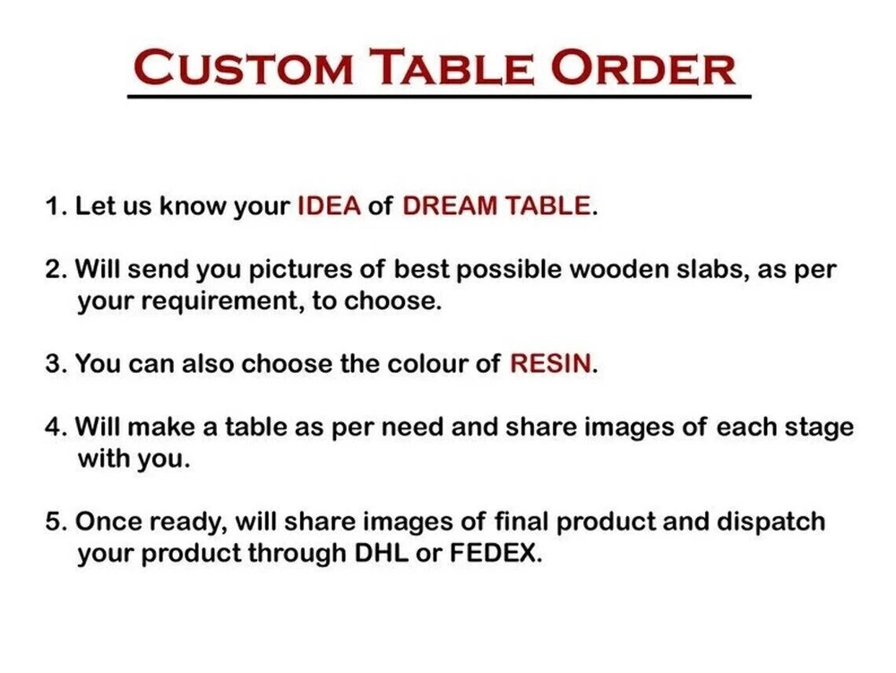 Welcome To Our Shop Unique-Handicrafts Note : Table top does not includes any wooden, marble stand or base if you like to buy marble or wooden base or stand that will be charged extra , Please message us for leg Description Used Material: Epoxy Wooden And Resin Handmade Arts Size: 24 "x24" Inches Color: As Photo Shape: Round Pattern: Handmade Room: Bedroom, Dining Room, Hallway, Home Office/Study, Kid’s Bedroom, Kitchen, Laundry/Utility Room, Living Room, Patio, Playroom Packaging: Wood & Foam Export Packing Shipping: Air Process of Making Epoxy Table This is a Epoxy Resin Gaming or Trading Desk made with Walnut which is beautified with colored pigment . The resin river table is brand new and the contemporary design would be a unique addition to your home. With its perfect combination of style and function this piece of furniture is sure to be the star of any room. This modern table will also make for an awesome gift for your friends or relatives. Each one is created with high quality resin and individually handcrafted. Resin is a highly reflective medium which will catch anyone’s eye walking into the room. All tables are finished to the highest standard. The epoxy resin is very strong & durable with specialised UV resistance. The tables are delivered flat packed. Simply bolt the legs. This listing is for a custom Live edge Wooden Table. We have access to thousands of live edge slabs of domestic and exotic species that are imported from around the globe. We use only the highest quality of hardwoods and materials in our work, and believe only in perfection. Kindly Note: As raw wood is used in its natural form and shape to make the table, the table shown in the photos has already been purchased so actual product may vary from the picture shown.Can be Customize, Please message your desired shape and size . We welcome your personalization request (custom request) as per your size, shape and design but you have to pay spare money. We are unable to ship to a PO Box address & for Russia, Brazil country we need firm entity name or business name parcel will not go to individuals name. If you have any query please feel free to contact us. NOTE : Only table top leg is not included. Kindly Note: Please contact me if you have any kind of query.Buyers are liable for any customs and import taxes that may apply. I'm not liable for delays due to customs. Buyers are liable for any customs and import taxes that may apply. I'm not liable for delays due to customs. Please contact me if you have any kind of query.