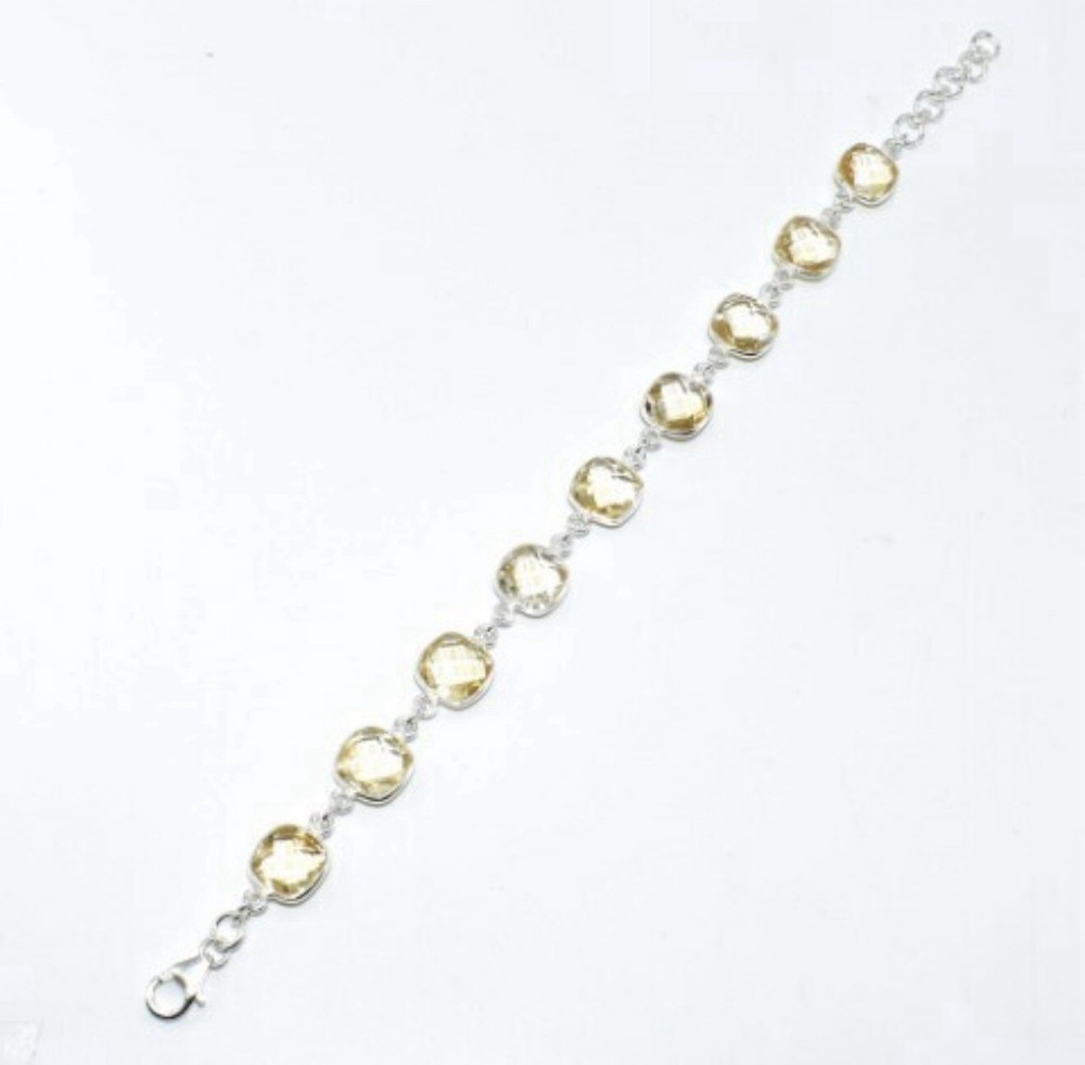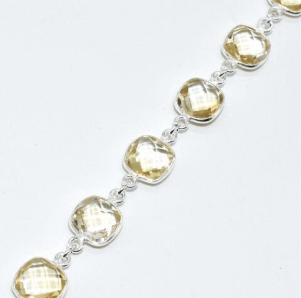 Material:GemstoneBrand:UnbrandedMetal:SilverMain Stone Color:YellowSecondary Stone:CitrineCut Grade:ExcellentMain Stone Creation:NaturalMain Stone Treatment:Not EnhancedStyle:Bangle, Chain, CharmChain Type:Round LinkCountry of Origin:United StatesBase Metal:SilverItem Length:7.5 inSetting Style:BezelNumber of Gemstones:9Main Stone:CitrineMain Stone Shape:OvalMetal Purity:925Color:SilverType:Bracelet