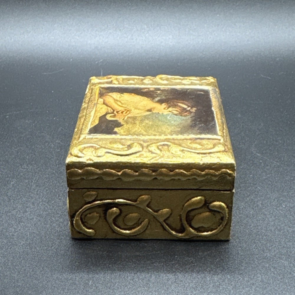 $ 7.39Vintage Indian Kashmiri Marigold Paper Mache Trinket Box with Birds & Floral Design