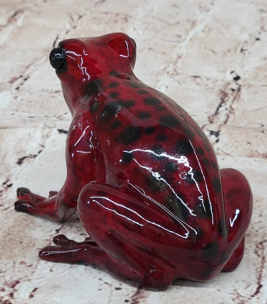Handcrafted Vienna Bronze Frog Sculpture: Limited Edition Collectible Figurine Handcrafted Vienna Bronze Frog Sculpture: Limited Edition Collectible Figurine Condition : This sculpture is in perfect condition. Bronze Dimensions: Height 3" X Width 5" Weight:2 LBS Inventory:2863134NR4982 This Hand Made Vienna Bronze Frog Sculpture is a delightful creation by the esteemed artist Marius, renowned for his exceptional skill in capturing the whimsy and charm of nature. Crafted with meticulous attention to detail, this limited edition sculpture portrays a whimsical frog in a playful pose, adding a touch of whimsy and personality to any space. Each sculpture is handmade using the lost wax method, ensuring superior quality and fine detailing. Signed and numbered by the artist Marius, this sculpture is a true collector's item, offering both authenticity and exclusivity. The use of red and black enamel enhances the sculpture's visual appeal, adding depth and contrast to the frog's intricate features. The vibrant colors create a striking contrast against the rich bronze backdrop, capturing the eye and inviting closer inspection. Mounted on a sturdy base, this Vienna Bronze Frog Sculpture is both elegant and stable, making it suitable for display in any home or office setting. Whether showcased on a desk, shelf, or mantel, this charming sculpture is sure to spark joy and conversation among admirers. Perfect for collectors or anyone who appreciates fine art, this limited edition sculpture is a delightful addition to any art collection. Hand Made Vienna Bronze Frog Genuine Bronze Sculpture Signed and Numbered Statue www.bronzhaus.com Video will open in a new window Using the eBay App? Paste link into a browser window: [isdntekvideo] Shipping Terms : Most of our items are shipped via USPS (United States Postal Service) mail or UPS. Most orders are shipped within 24-48 hours of purchase. Please be aware that not all items are available for USPS shipping due to size and weight. We do ship to Hawaii, Alaska, Canada, Puerto Rico, APO/AE, and U.S. Virgin Islands, however, an additional charge may be required. Please contact us before making any purchases in these areas. For Non-USA customers, you may be responsible for all duty, tax, brokerage fees that may be due upon delivery (shipping costs cover freight charges only). We also ship internationally. Please refer to the "Shipping and Handling" chart for the rates for each area. Payment : We accept just about any form of payment. PayPal, Master Card, Visa or American Express credit cards. Money orders, cashiers checks, and even personal or business checks. For governmental institutions, we will also accept a purchase order. Please understand that for personal or business checks we have to wait for the check to clear (usually 7 days) before shipping. Condition : New Detailed Hand Crafted Hot Cast Bronze Satisfaction Guaranteed. This is Stock Photo, Slight Color Variation!! Listing and template services provided by inkFrog