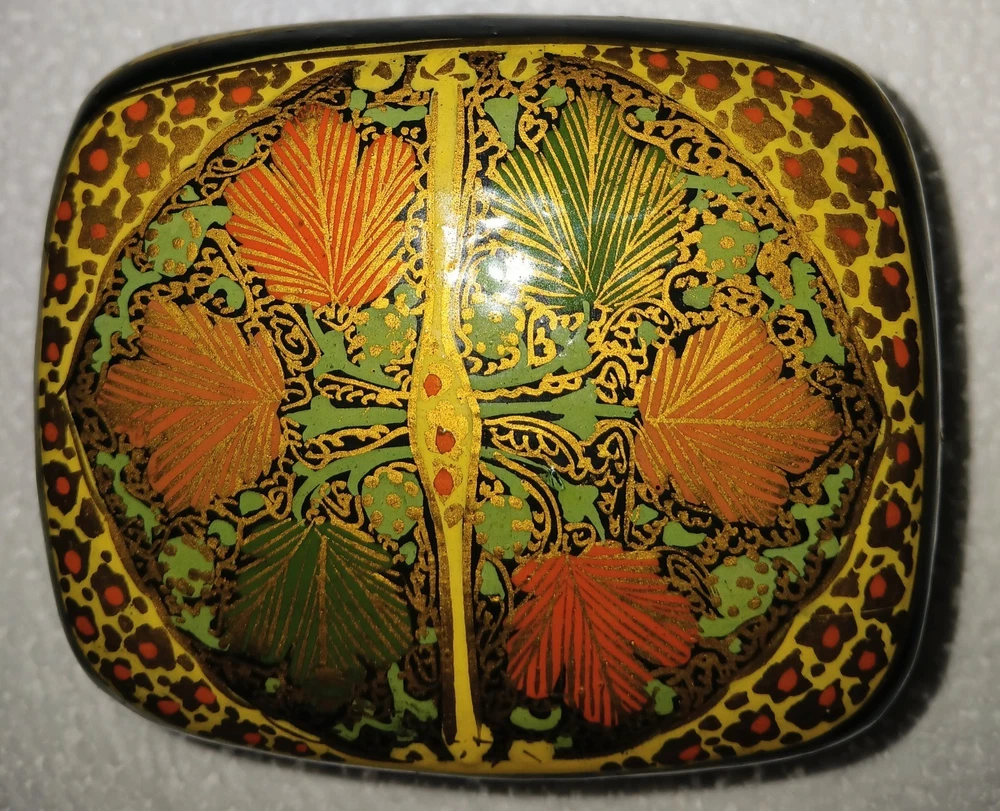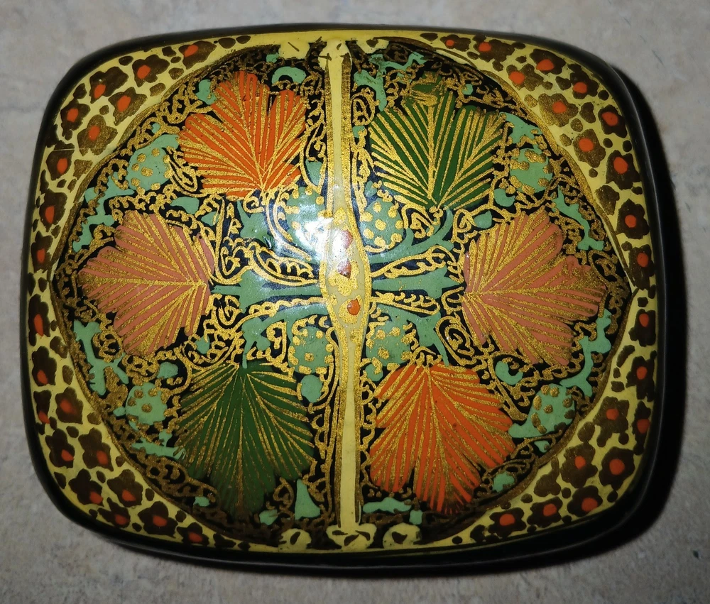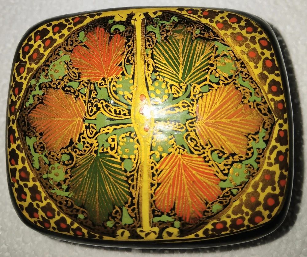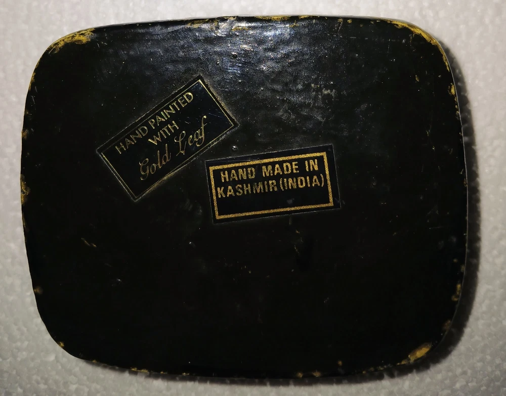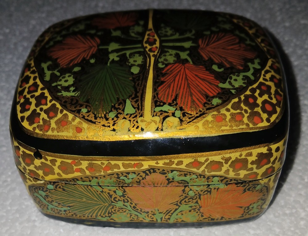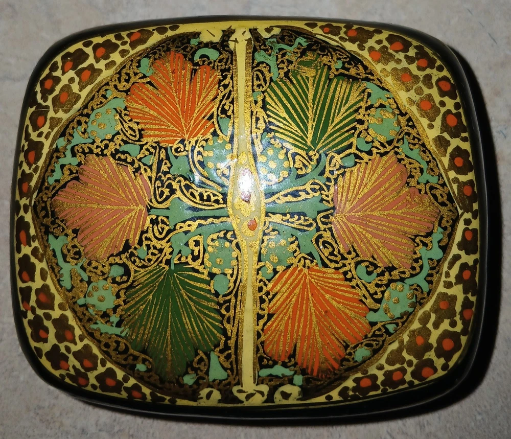 Handcrafted Vintage Kashmir Paper Mache Trinket Box with Lacquer and Hand Painting