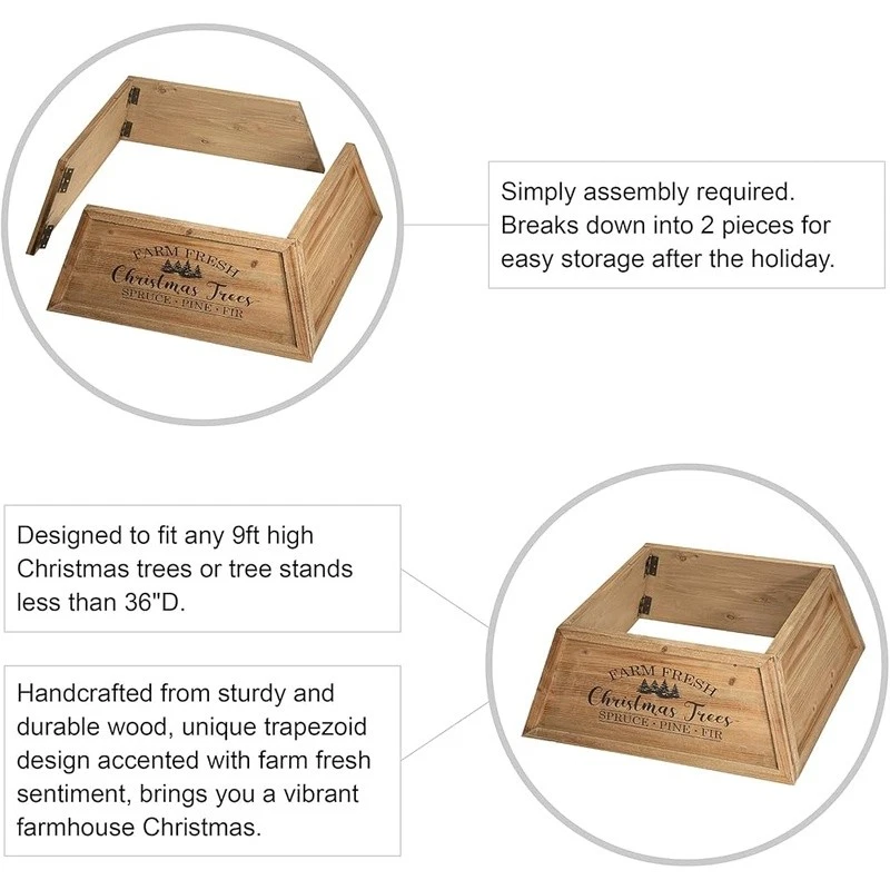 Wet Dog Food Chopped Ground Dinner Beef Canned Adult Nutrition 4 Pack 22oz Cans 15.68 USD 16.86 USD Free shipping 7% off Professional Handheld Seed Spreader Bag Seeder 25lbs Capacity W/ Waterproof Bag 48.52 USD 52.17 USD Free shipping 7% off Christmas Window Silhouette Lights 4 Pack Snowflake Snowman Deer Bell Decor New 51.97 USD 55.88 USD Free shipping 7% off Iridescent Glass Beverage Dispenser 1.5 Gallon Clear Drink Server W/ Lid Spigot 28.41 USD 30.55 USD Free shipping 7% off 3 in 1 Pasta Maker Attachment Kitchen Stand Mixer Roller Cutter Set Red New 51.88 USD 55.79 USD Free shipping 7% off 4-Person Clip & Camping Dome Tent Outdoor Portable Hiking Lightweight HOT 61.4 USD 66.02 USD Free shipping 7% off Durable 5.70-8 8-Ply Trailer Tire Non-Radial Highway Trailer Replacement Tire US 60.68 USD 65.25 USD Free shipping 7% off Large Jerky Gun W/ Stainless Steel Trigger 3 Attachments & 5 Spice Packets New 23.72 USD 25.5 USD Free shipping 7% off Cozy Plush Throw Blanket Multi Color Leopard Machine Washable Eco Friendly New 11.61 USD 12.48 USD Free shipping 7% off Durable Aluminum RV Stabilizer Jacks Set Adjustable Height Travel Trailers New 42.3 USD 45.48 USD Free shipping 7% off Acrylic Lying Deer Christmas Tabletop Decor Holiday Centerpiece Elegant Design 31.35 USD 33.71 USD Free shipping 7% off Musical Nutcracker Snow Globe Clara Christmas Decoration Plays Nutcracker Suite 48.34 USD 51.98 USD Free shipping 7% off About this item MATERIAL: This tree collar is handcrafted from sturdy and durable wood. The trapezoididal design adds your tree with uniqueness SIZE: The exquisite tree cover designed to fit any 9ft high Christmas trees or tree stands less than 36"D UNIQUE DESIGN: Christmas Tree Collar features unique trapezoid design accented with farm fresh sentiment, brings you a vibrant farmhouse Christmas EASY TO USE: Simply assembly required. You will simply take the 2 side panels and lock them into the front panel. From there you can then slide your box into place in front of your tree. Breaks down into 2 pieces for easy storage after the holiday FESTIVE ADDITION: Our handcrafted tree box collars add a rustic, elegant charm to any home or business. The tree boxes not only add beauty and hide the undesirable parts of your tree, but they also prevent kids and pets from getting into the bottom side of your tree Color: 26''l Natural Material: Wood Size: Large Brand: Pattern: Solid You may also like Heavy Duty Rolling Christmas Tree Stand Base 7ft to 9ft Artificial Trees New 90.98 USD Free shipping Round Velvet Polyester Tablecloth Checkered Border Dining Room Home Decor New 88.17 USD Free shipping Outdoor RGBIC Cone Tree Lights Smart Music Mode Decorative Christmas Lighting US 168.98 USD Free shipping Revolving Christmas Tree Stand 360 Rotation Music Remote Control Dual Mode New 83.18 USD Free shipping 4FT Prelit Christmas Tree Multi-Color LED Lights Indoor Outdoor Holiday Decor US 64.98 USD Free shipping Automatic Christmas Tree Stand Durable Water Level Indicator Easy Setup New 77.98 USD Free shipping Adjustable Christmas Tree Stand Heavy Duty W/ Wheels Easy Assembly Sturdy Metal 41.58 USD Free shipping Metal Christmas Tree Collar Rhombus Pattern Holiday Base Cover Tree Decoration 77.98 USD Free shipping Christmas Tree Stand Metal Wood Stable Assembly Big Water Capacity Gifts Storage 64.98 USD Free shipping Durable 360-Degree Rotating Christmas Tree Stand W/ Three Built-In Outlets New 64.98 USD Free shipping Sturdy Christmas Tree Stand 8ft Trees Easy Setup Safe Design No Tools Required 45.48 USD Free shipping Heavy Duty Cast Iron Tree Stand Easy Install Steel Legs Stable Support New 51.98 USD Free shipping